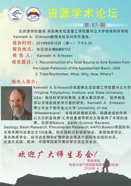 【6月10日】第87期资源学术论坛:Kenneth A. Eriksson学术报告