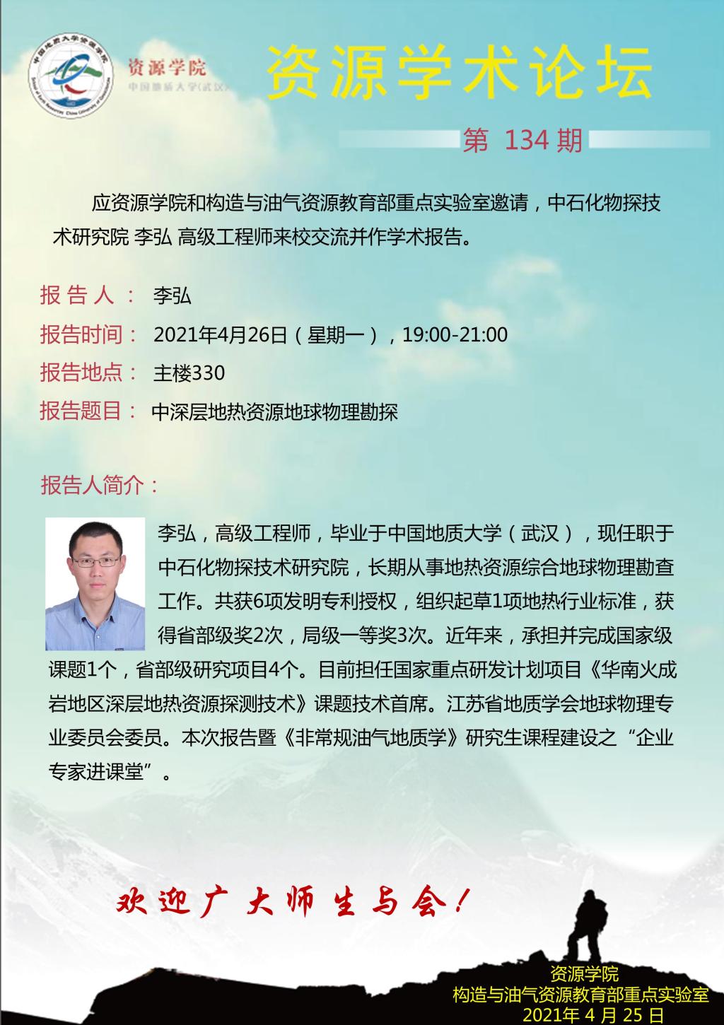 【04月13日】第134期资源学术论坛:李弘学术报告