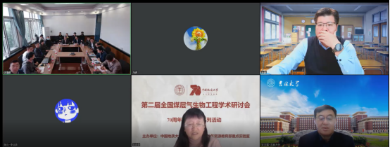 研讨会期间,各专家学者以“煤层气生物工程与碳减排”为主题,结合了自身的研究工作,进行了深入的探讨。吉林大学许天福教授、东北石油大学潘哲君教授、中国科学院大学余志晟教授、西安科技大学刘向荣教授、昆明理工大学张登峰教授,分别以“数值模拟在CCUS潜力和安全性评价的应用”、“二氧化碳在煤层中的封存研究”、“煤层气原位生物气化研究进展与现场应用方案探讨”、“新疆低阶煤的微生物降解研究”、“煤储层协同埋存富氧燃煤烟气关键组分与驱替煤层气基础研究”等为题作了专题报告。期间,还有来自中国矿业大学(北京)、太原理工大学、齐鲁工业大学、太原科技大学、 河南理工大学、西北大学、 安徽理工大学、中国矿业大学、煤与煤层气共采国家重点实验室等科研院所等15位专家依次做了主题或专题报告。研讨会现场学术氛围浓烈,线上直播平台反应热烈,最高峰有3700多人同时在线交流讨论。