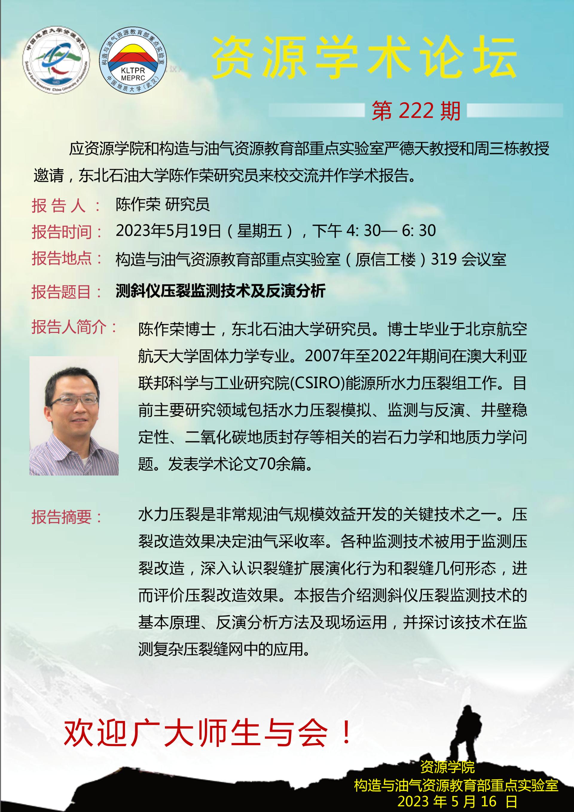 【5月19日】第222期资源学术论坛:陈作荣学术报告