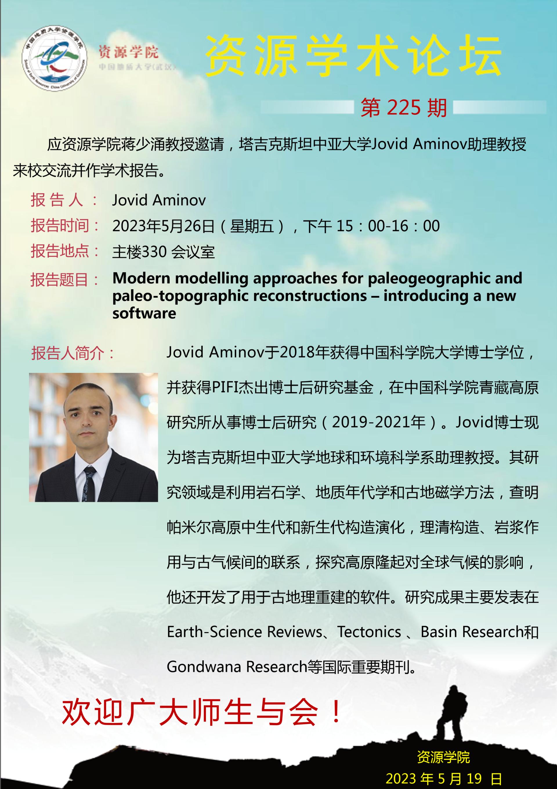 【5月26日】第225期资源学术论坛:Jovid Aminov学术报告