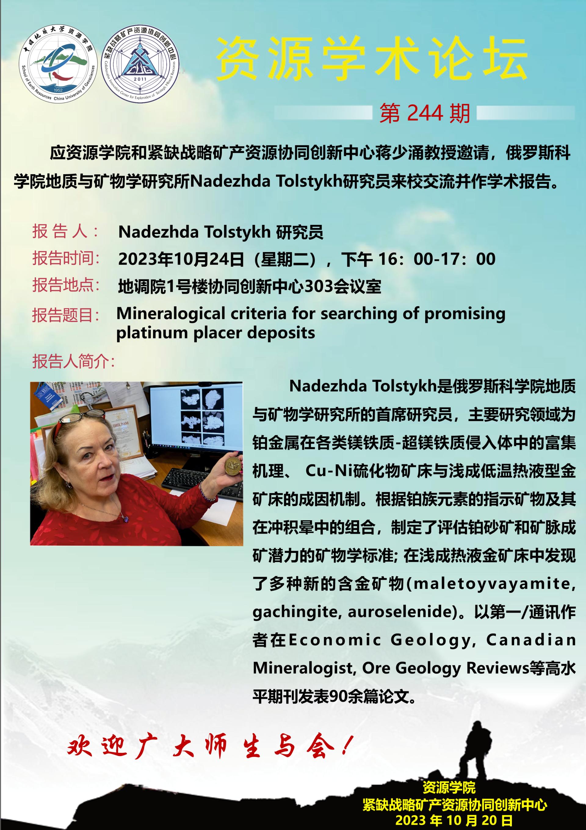 【10月24日】第244期资源学术论坛:Nadezhda Tolstykh学术报告