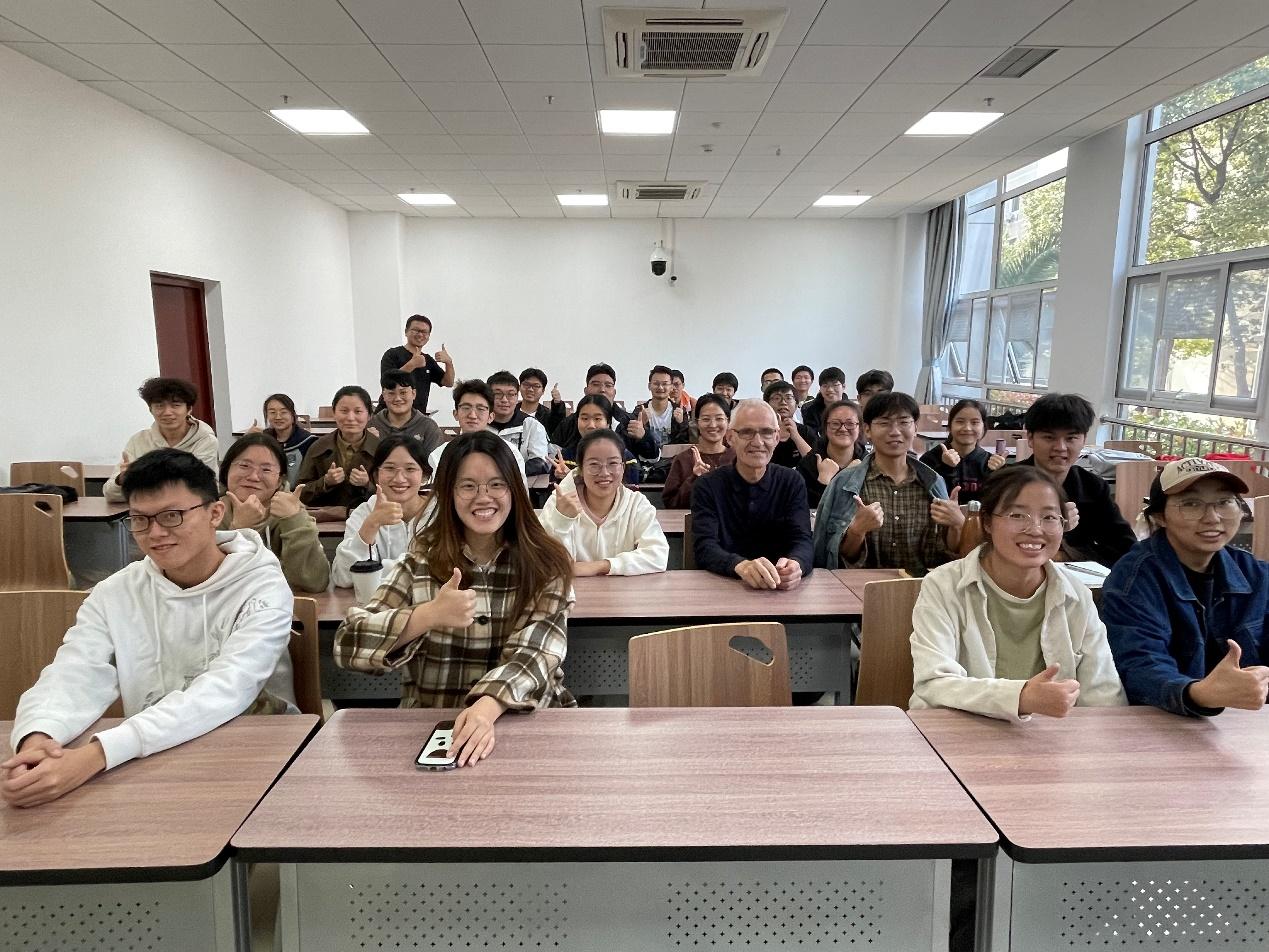 10月24日,Dr.Krooss在东区综合楼B0110为盆地矿产系21级、22级本科生讲授了一堂生动的煤地质学课程。Dr.Krooss循序渐进地介绍了煤的演化和生物合成、泥炭的形成环境、煤岩石组分以及煤化作用和成熟度等理论知识。让学生们对这个领域有了更深入的理解,同时也激发了他们对煤地质学的浓厚兴趣。课程结束后,学生们与Dr.Krooss合影留念。