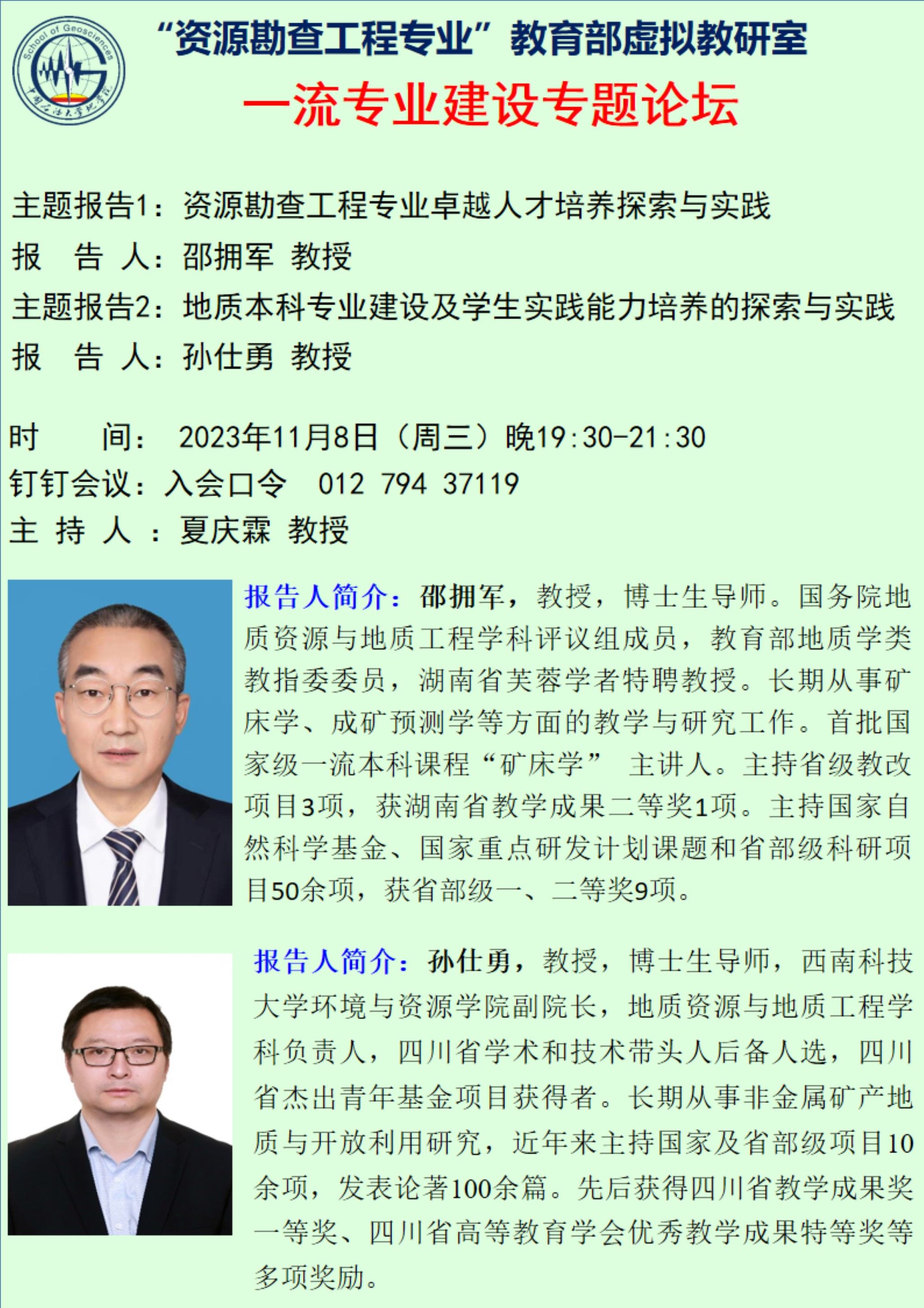 【11月8日】资源勘查课程虚拟教研室研讨会:一流专业建设专题论坛