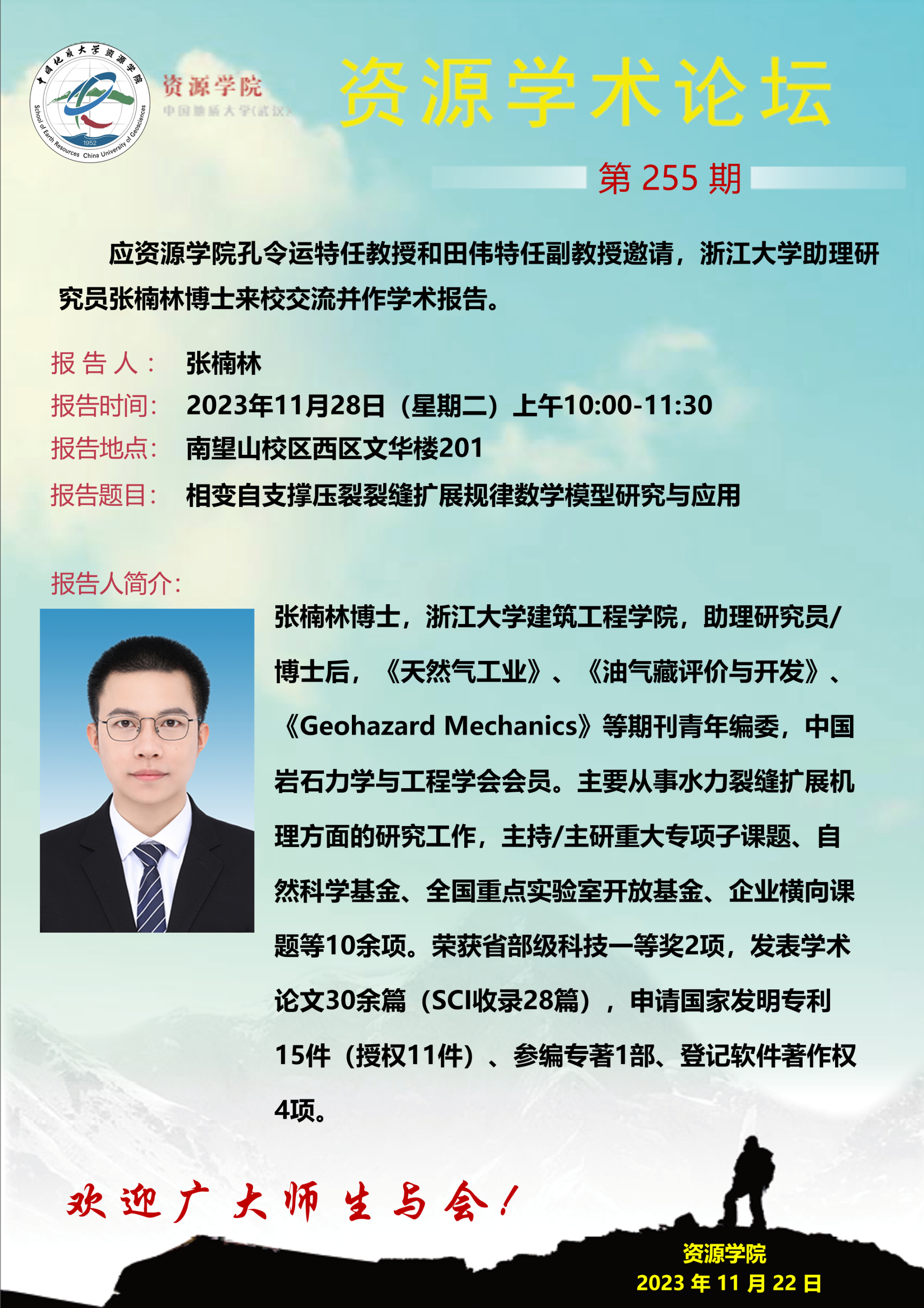 【11月28日】第255期资源学术论坛:张楠林学术报告