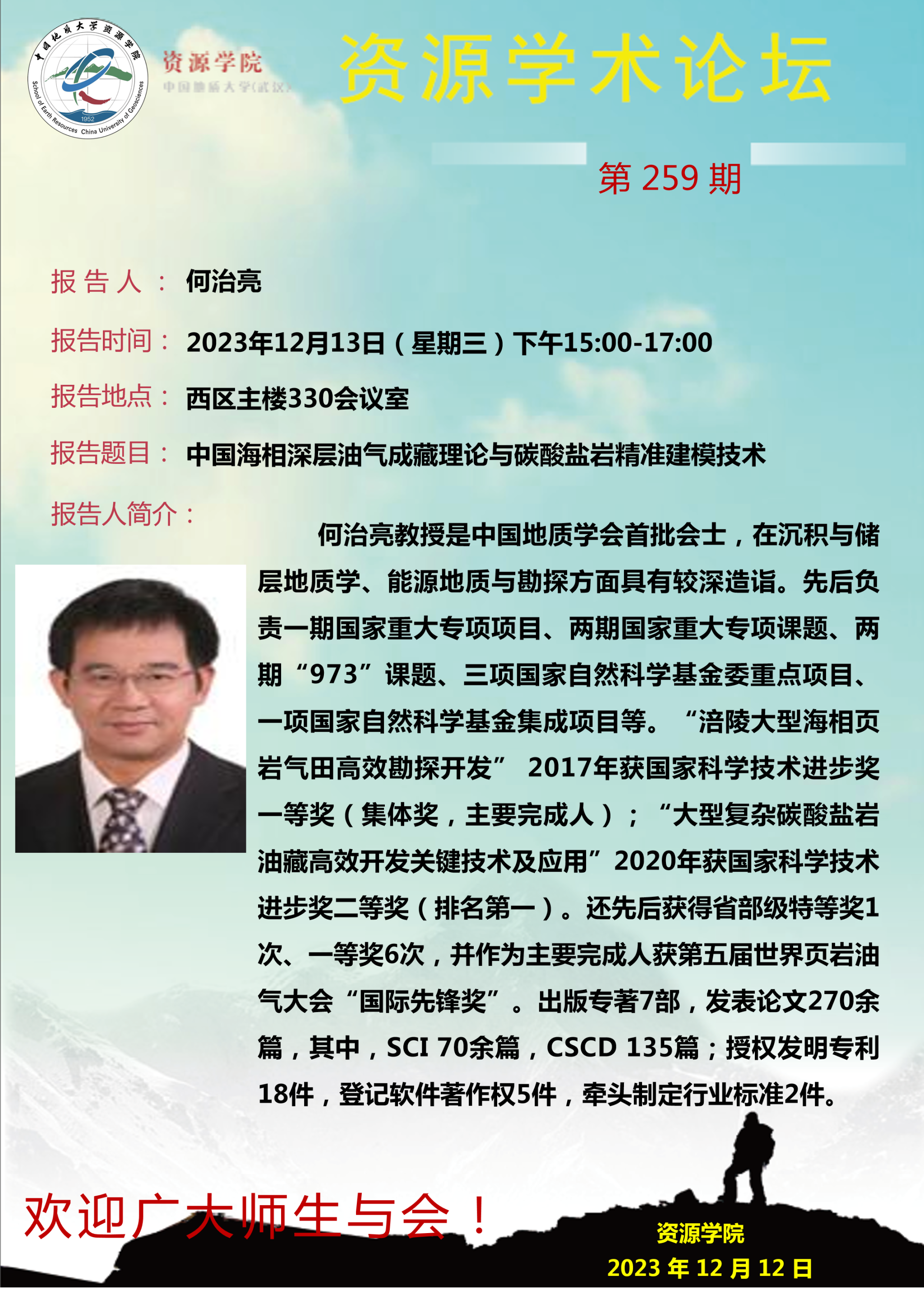 【12月13日】第259期资源学术论坛:何治亮学术报告