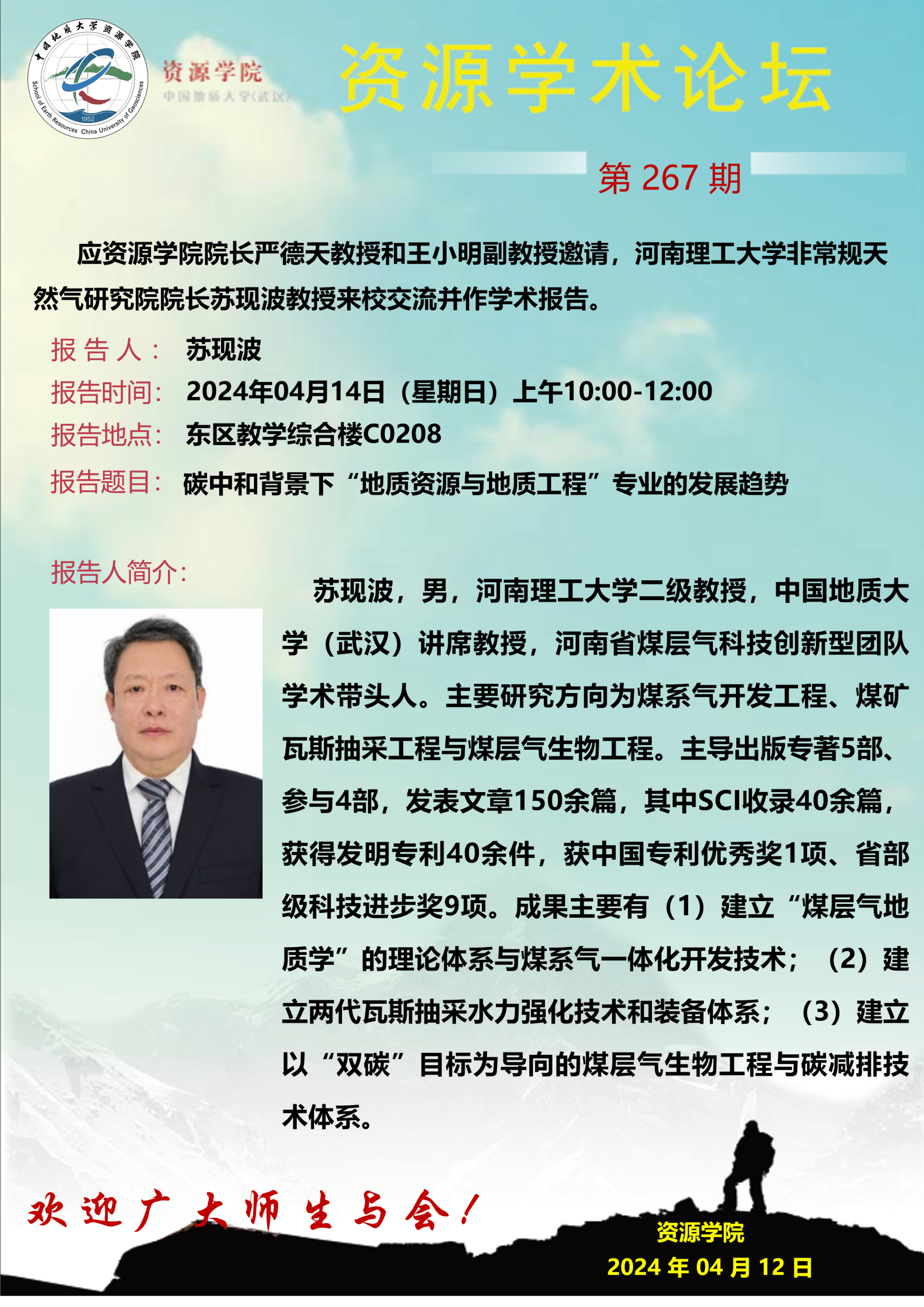 【4月14日】第267期资源学术论坛:苏现波学术报告