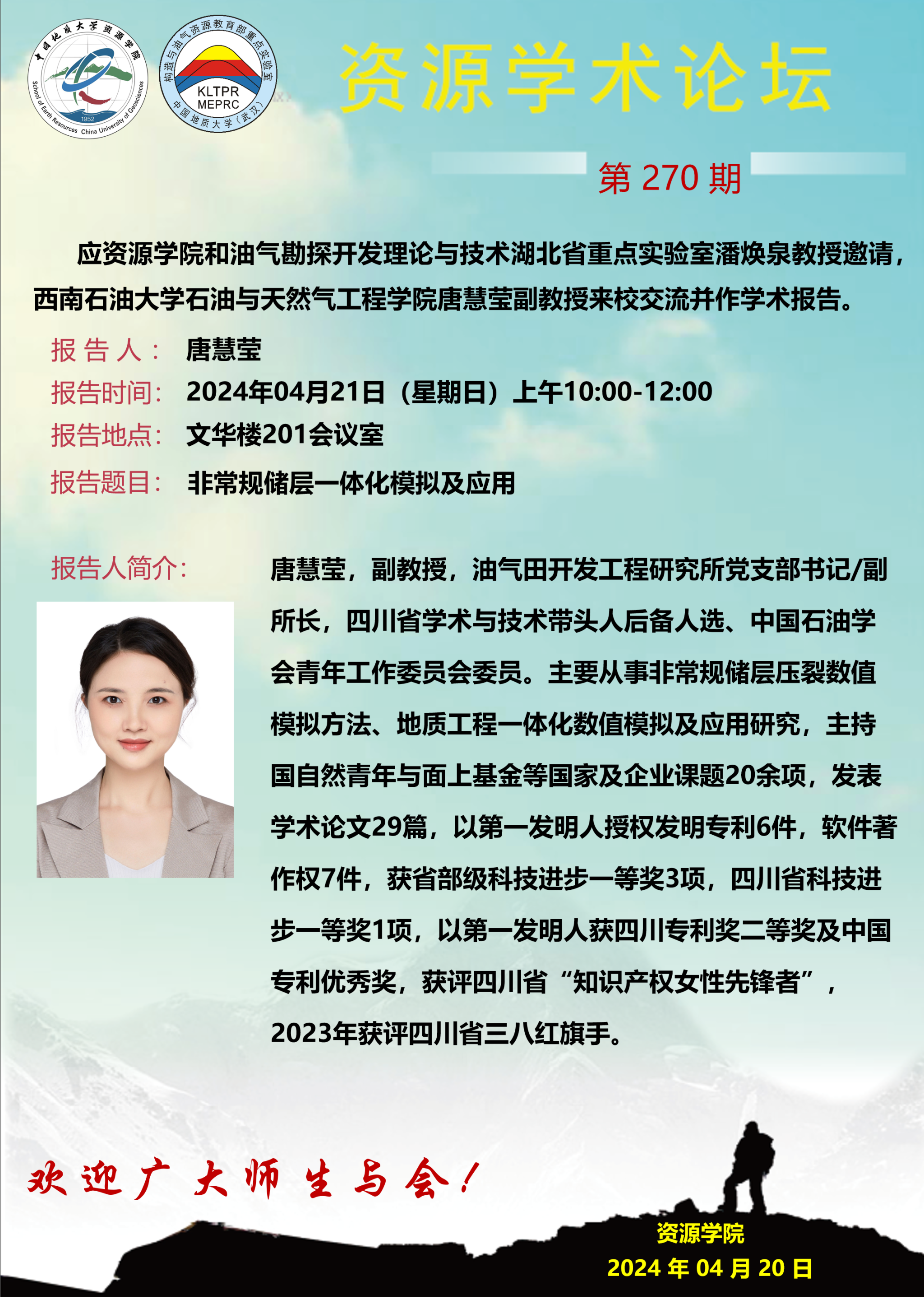 【4月21日】第270期资源学术论坛:唐慧莹学术报告