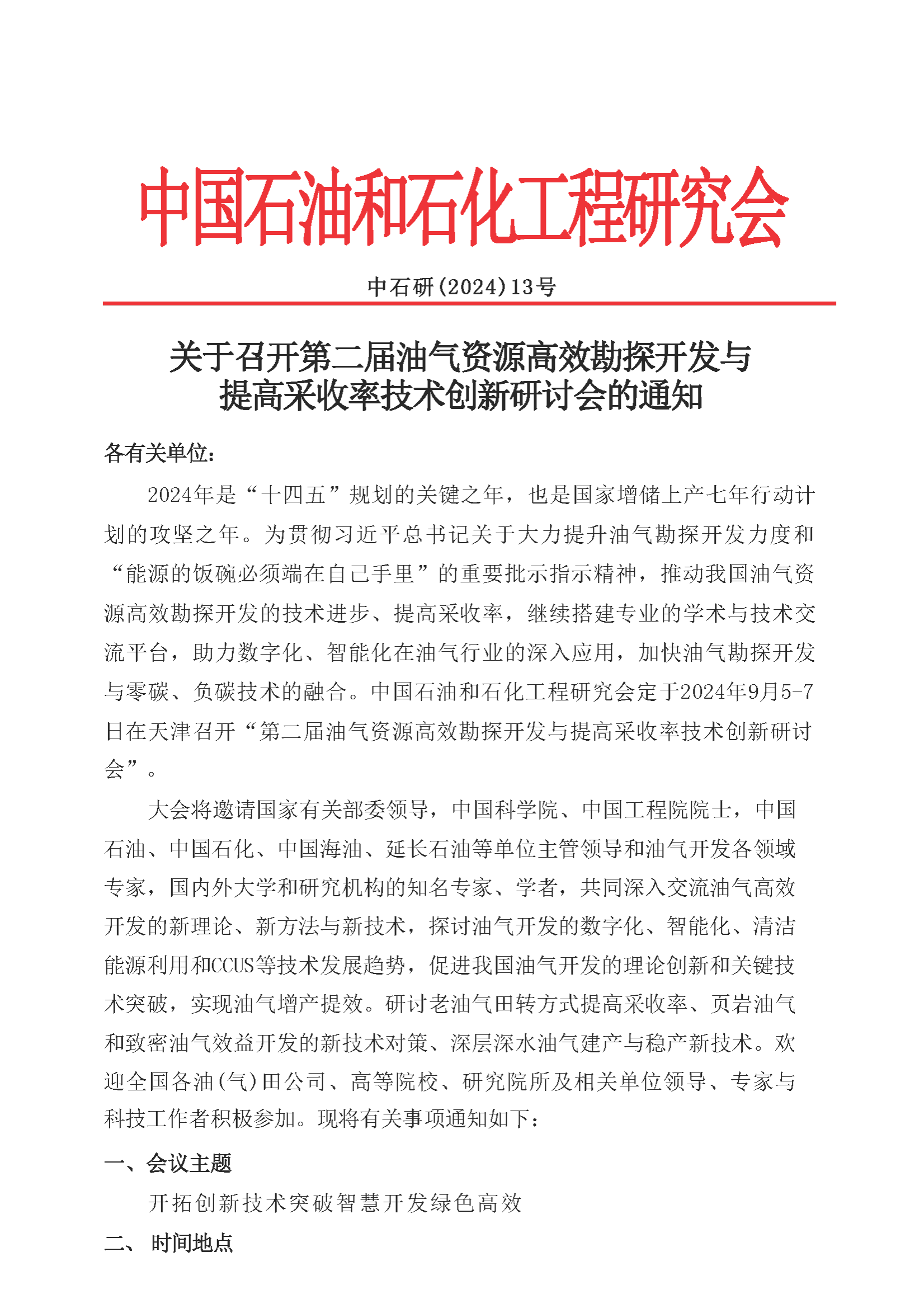 第二届油气资源高效勘探开发与提高采收率技术创新研讨会的通知