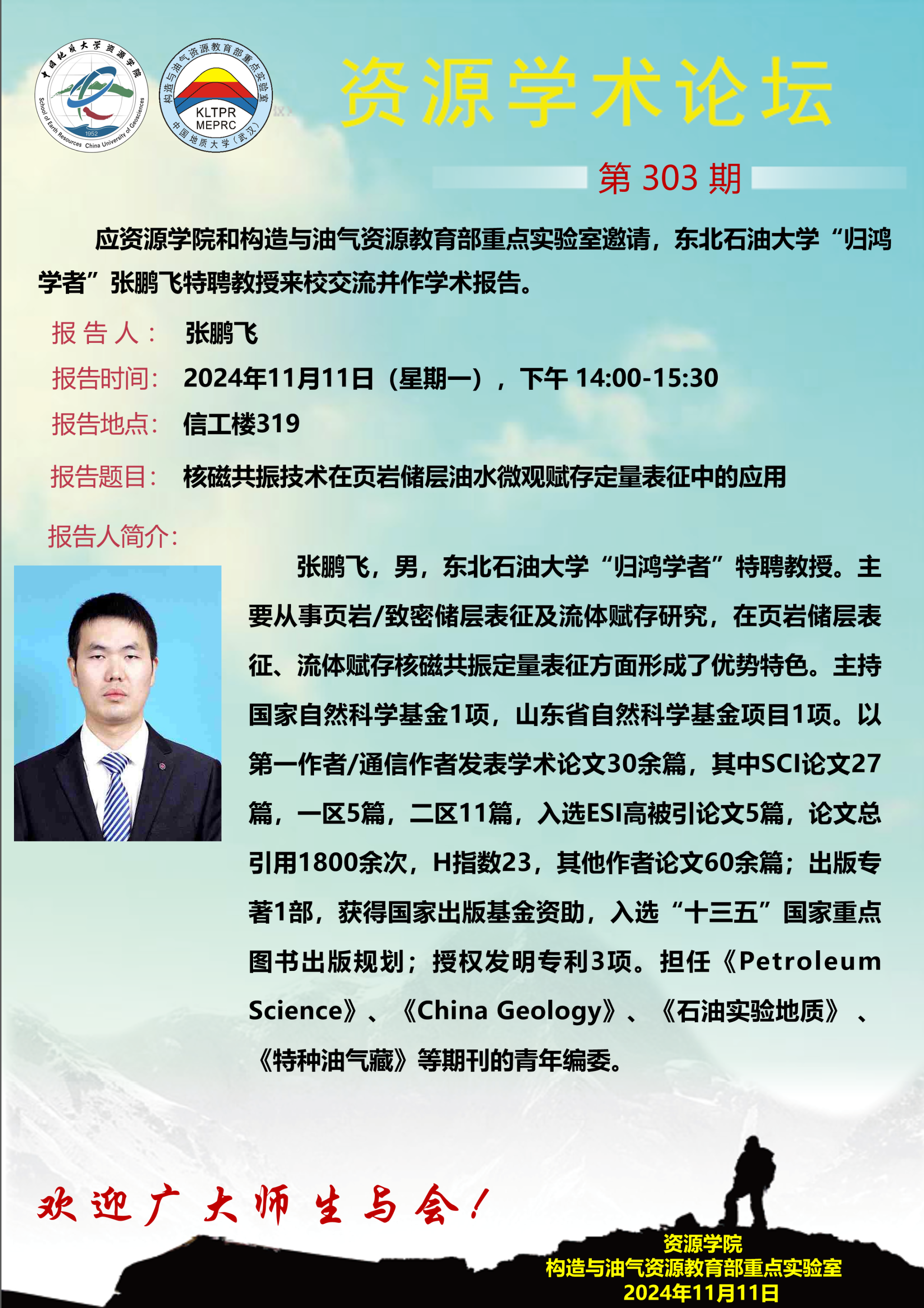 【11月11日】第303期资源学术论坛:张鹏飞学术报告