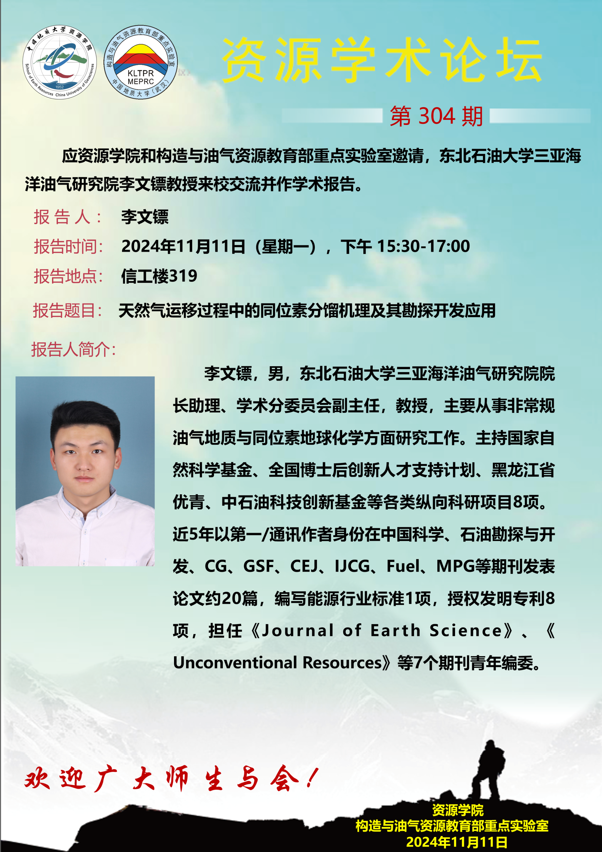 【11月11日】第304期资源学术论坛:李文镖学术报告