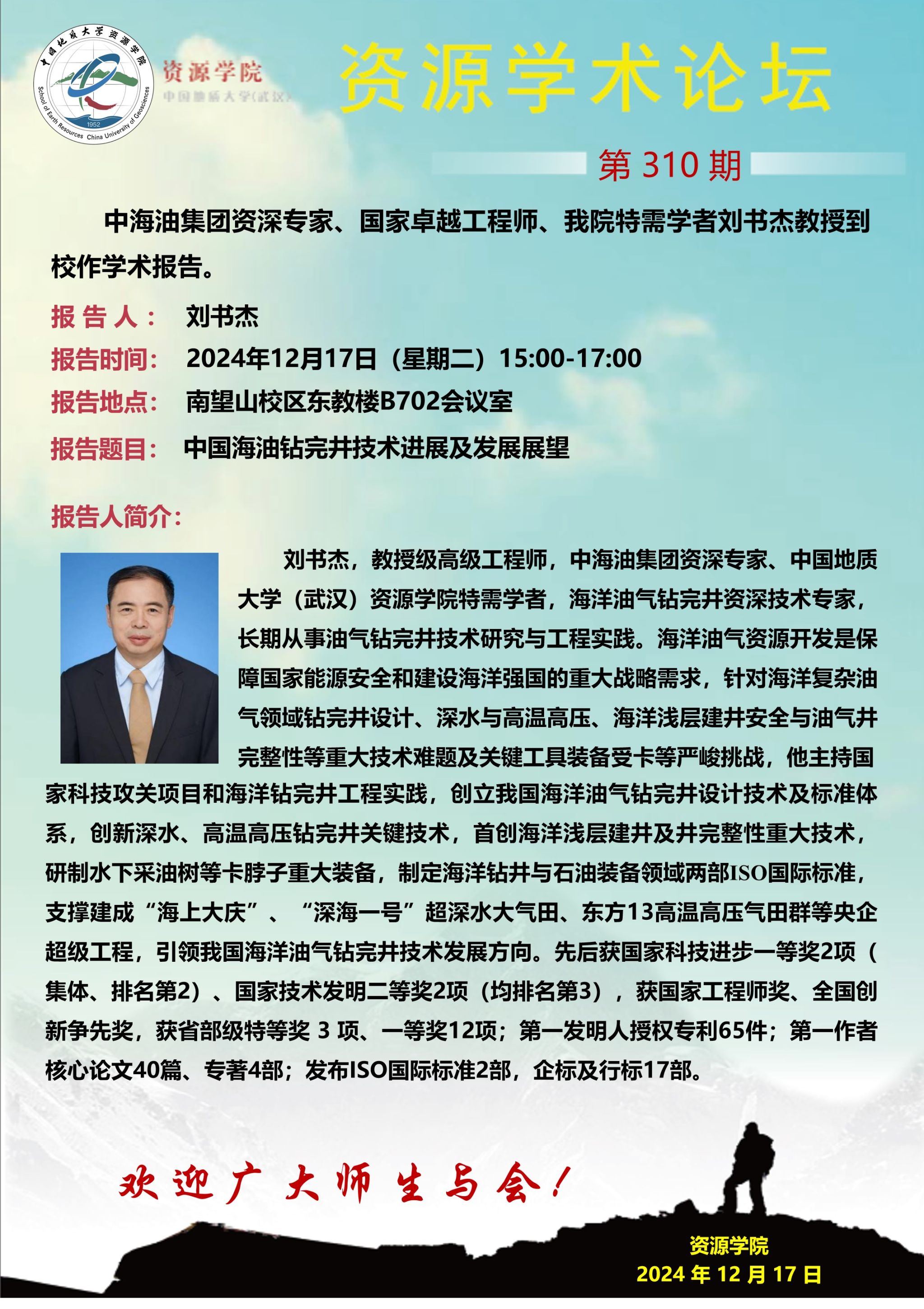 【12月17日】第310期资源学术论坛:刘书杰学术报告