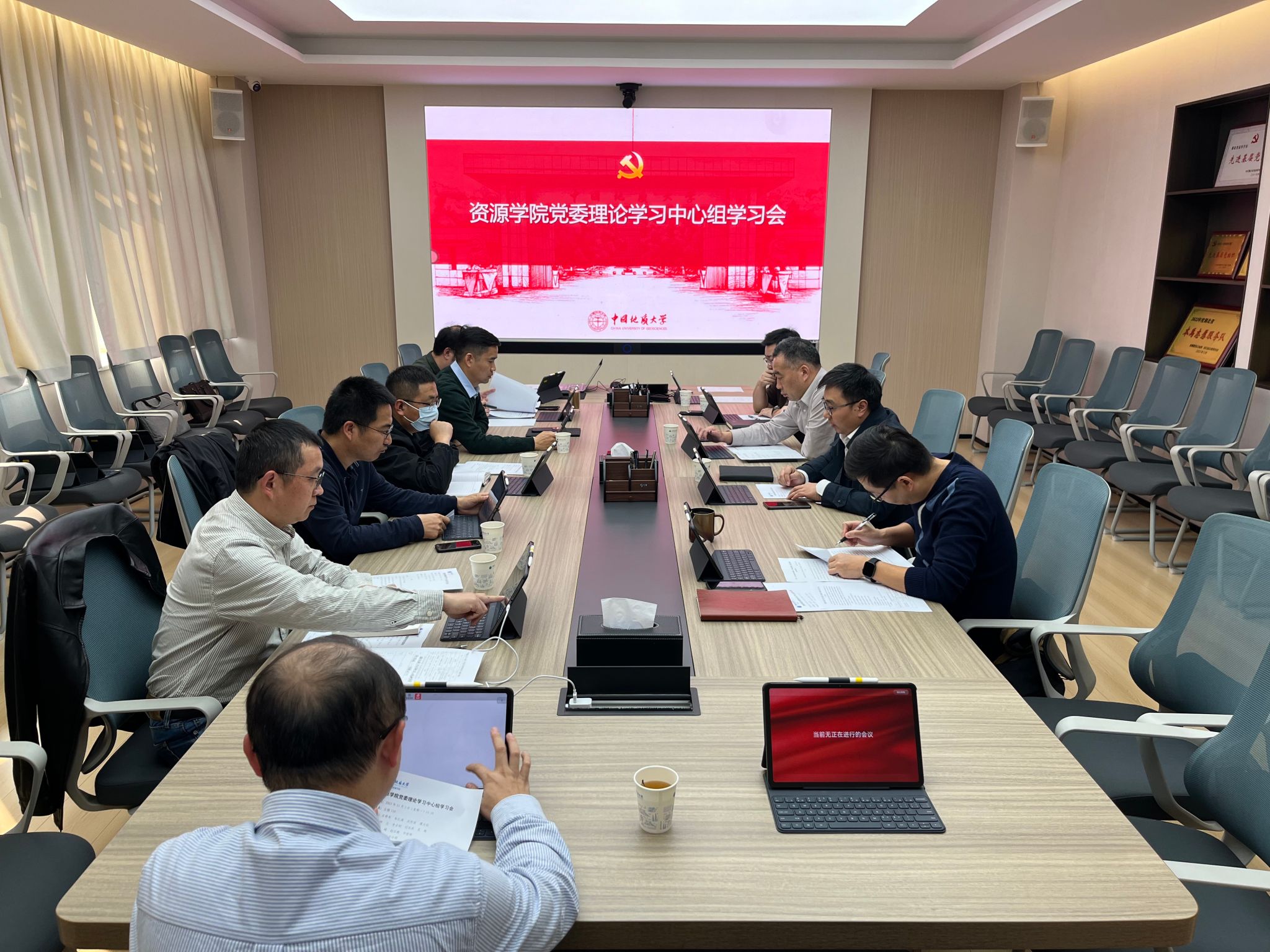 与会人员围绕学习内容,结合学院学科特点与发展实际,聚焦人工智能、大数据等前沿技术在资源勘探开发、人才培养模式创新、资源能源安全保障等方面的作用发挥进行交流讨论。