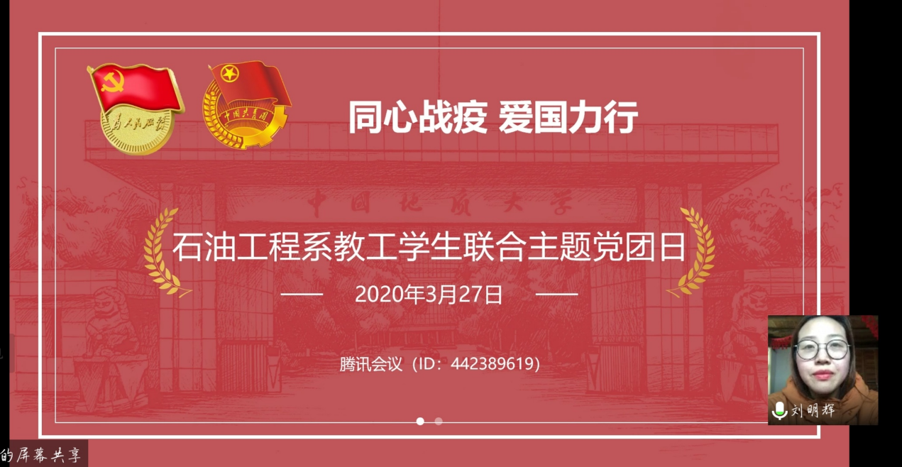 (通讯员:雷寒月)2020年3月27日14:00,我院石油工程系“同心战疫 爱国力行”主题党团日活动顺利开展。参与本次党团日活动的有我院副院长朱红涛教授、石油工程系全体教工以及全院石油工程系大一、大三、大四学生共150余人参会。团委书记刘明辉主持会议。