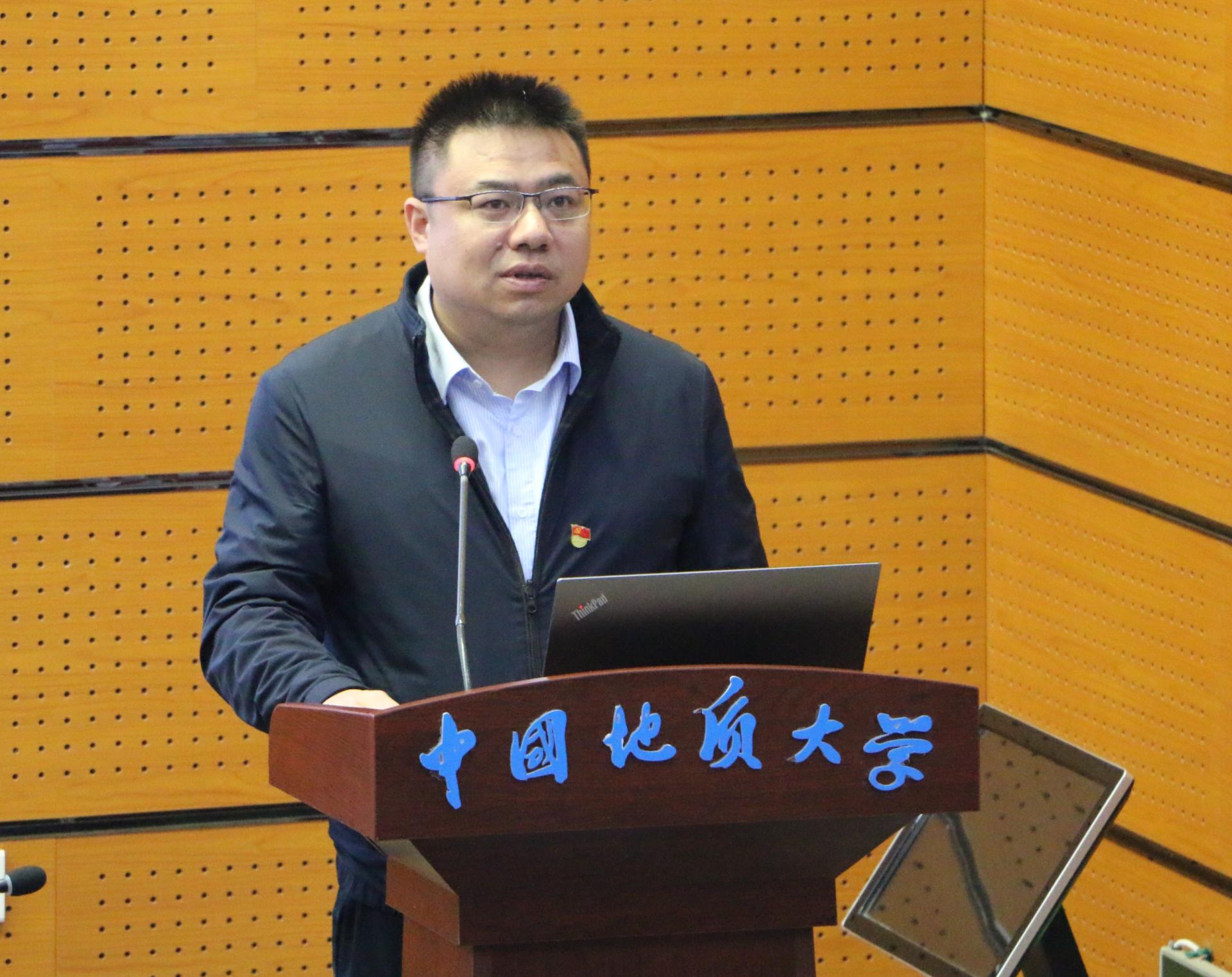 为深入学习贯彻习近平总书记关于能源资源工作的重要论述和重要回信精神,大力弘扬地质工作者的优良传统,激励师生坚定资源能源报国理想信念,11月12日,十大买球官方网站党委联合湖北省地质局第一地质大队党委开展理论学习,举办地质找矿先进事迹报告会,组建资源能源宣讲团。全国地质勘查功勋单位湖北省地质局第一地质大队党委书记、队长、我院资源勘查工程专业2004届本科毕业生吴昌雄作专题报告。湖北省地质局第一地质大队副队长刘冬勤、杨伟卫,副总工程师蔡恒安,十大买球党委常委、宣传部部长储祖旺,学院党委书记高复阳,副院长赵葵东、沈传波,党委副书记谭文伦,教育部首批“双带头人”教师党支部书记工作室负责人谢丛姣,资源科学与工程系教师、学生代表,第27期入党积极分子培训班学员线下参加报告会,全体学生党支部、学生班团委成员在线参加报告会。副院长赵葵东主持报告会。
