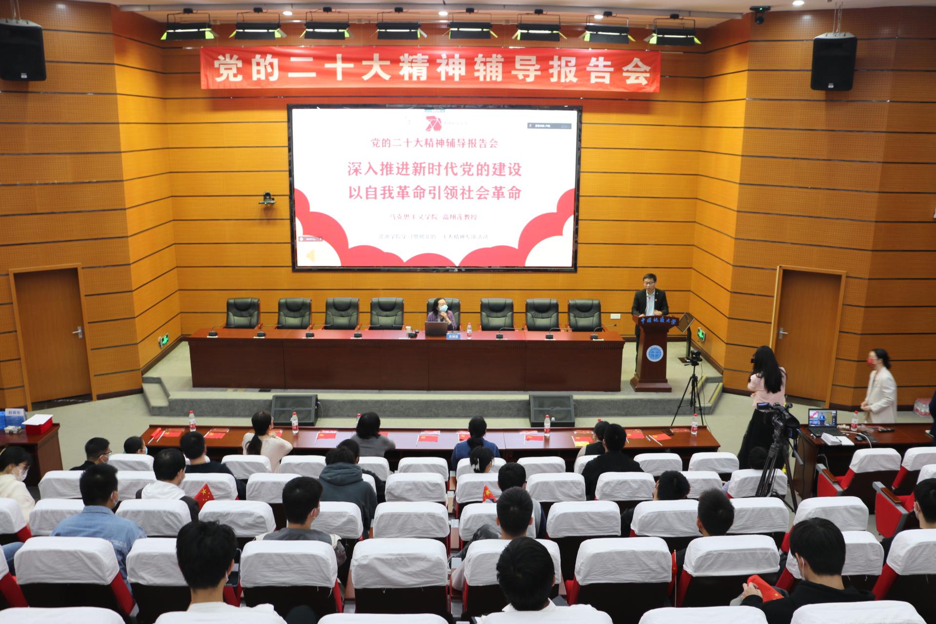 谭文伦在主持时讲到,全院师生要切实增强学习贯彻党的二十大精神的主动性,坚持把学深悟透习近平总书记所作的重要报告和《中国共产党章程(修正案)》作为重中之重,把贯彻落实习近平总书记重要回信精神作为重要内容,按照学校党委统一部署,按照学院党委整体安排,把规定动作落到实处,把自选工作干出实效,把延展动作抓出实绩,汇聚学院事业发展、学生成长成才的强大动力。