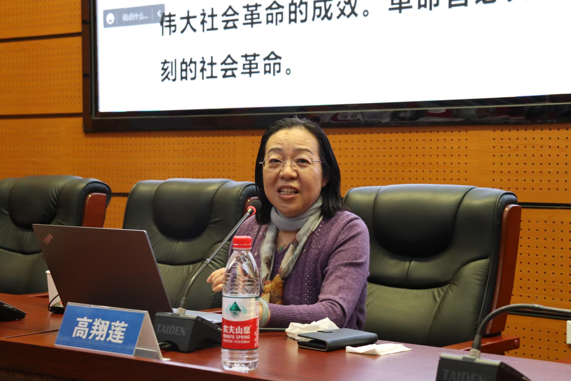 11月12日,十大买球官方网站举行党的二十大精神辅导报告会,马克思主义学院高翔莲教授应邀作专题辅导报告。学院院直党支部成员,学生党员,第二十七期入党积极分子培训班学员线上线下参加报告会。党委副书记谭文伦主持会议。