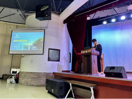公共管理学院志愿服务团队李翊政以“青春·真情”的志愿底色为基点,着重介绍了“1+4+10”部门发展模式,生动地讲述了协会开展应急救援科普、疫情防护口罩分发、发现“身边的雷锋”主题征文等特色品牌活动和校园服务活动场景。