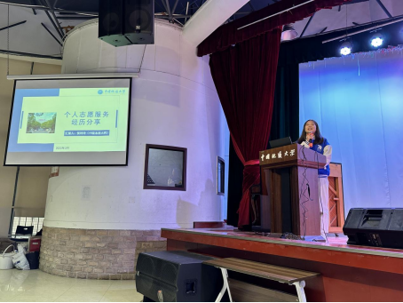 第25届研究生支教团成员侯玲玲,大学四年参与40余次志愿服务活动,志愿时长长达242个小时。她分享了在社会服务、公益宣讲和支教经历中的所感所悟,并讲到,“谈到志愿服务带给她的收获是向着更好的、更明确的方向出发。”