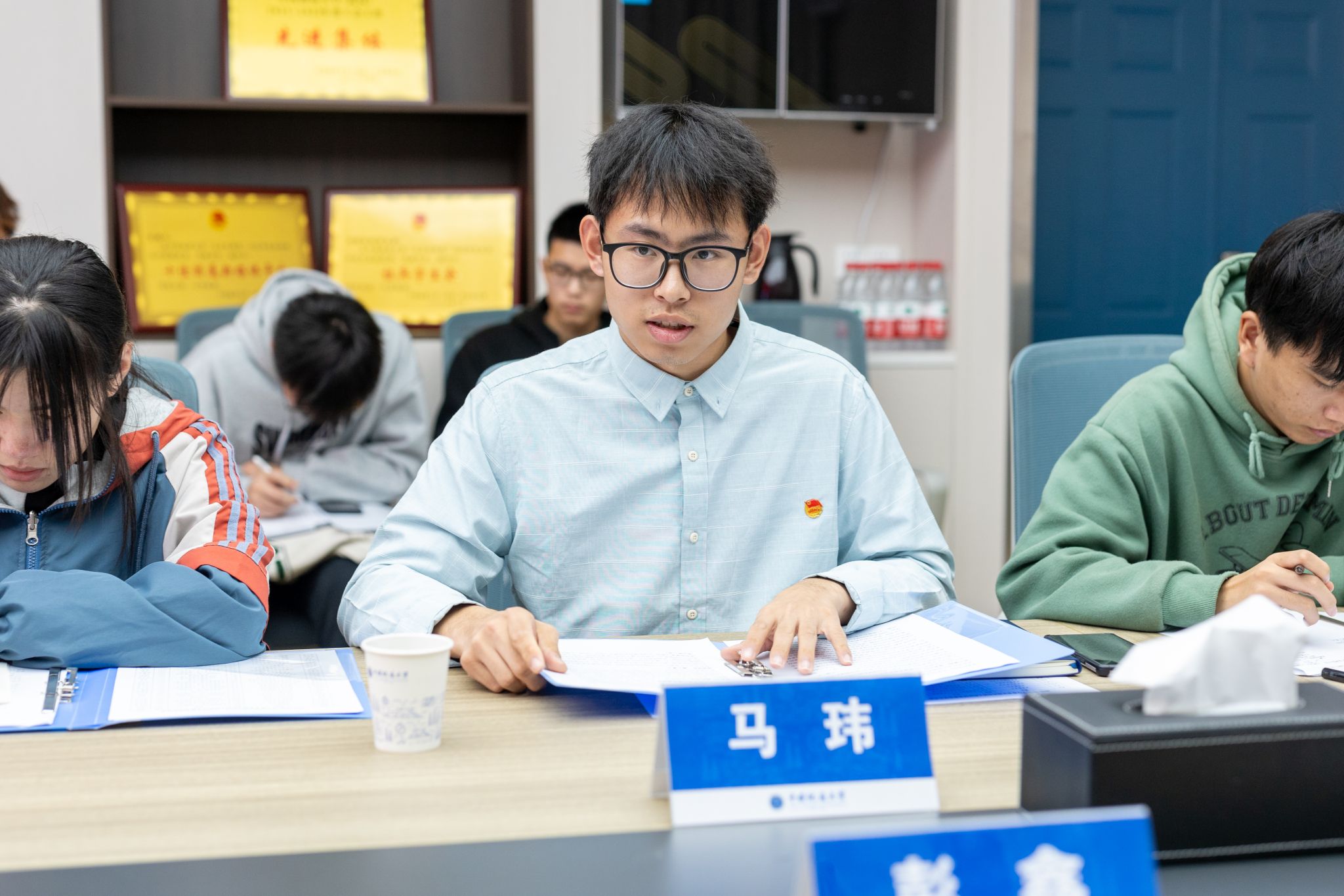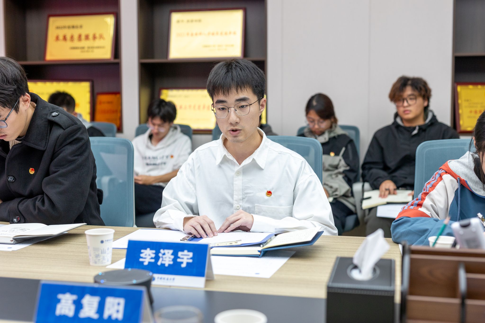 学生团委副书记李泽宇、陈丹,学生会执行主席马玮、研究生会执行主席余海波分别发言。他们交流了近期各团学组织工作开展,分享了工作感悟,并重点围绕“加强研究生班团支部建设、加强榜样选树与宣传、丰富文化活动”等提出工作建议。