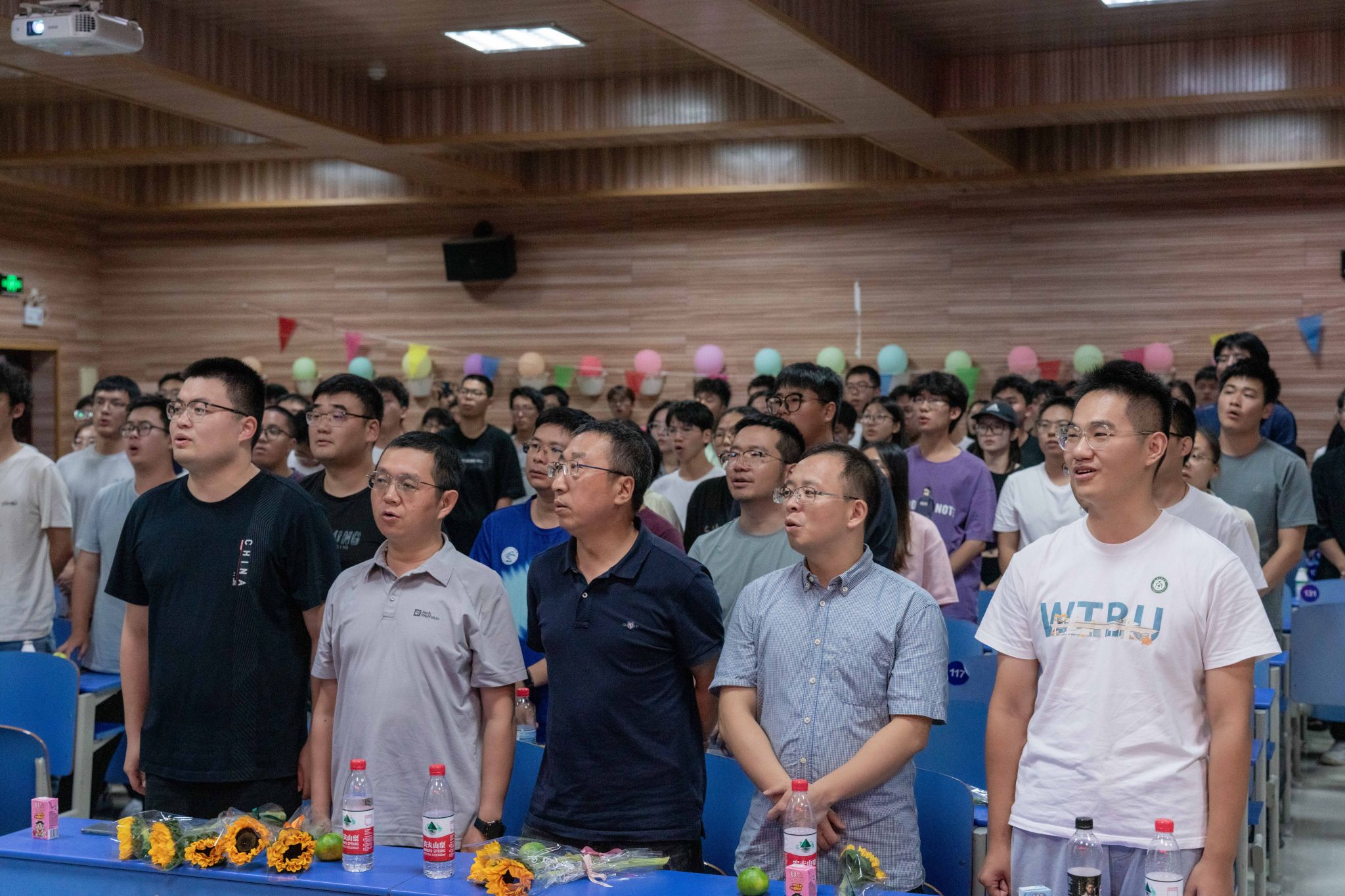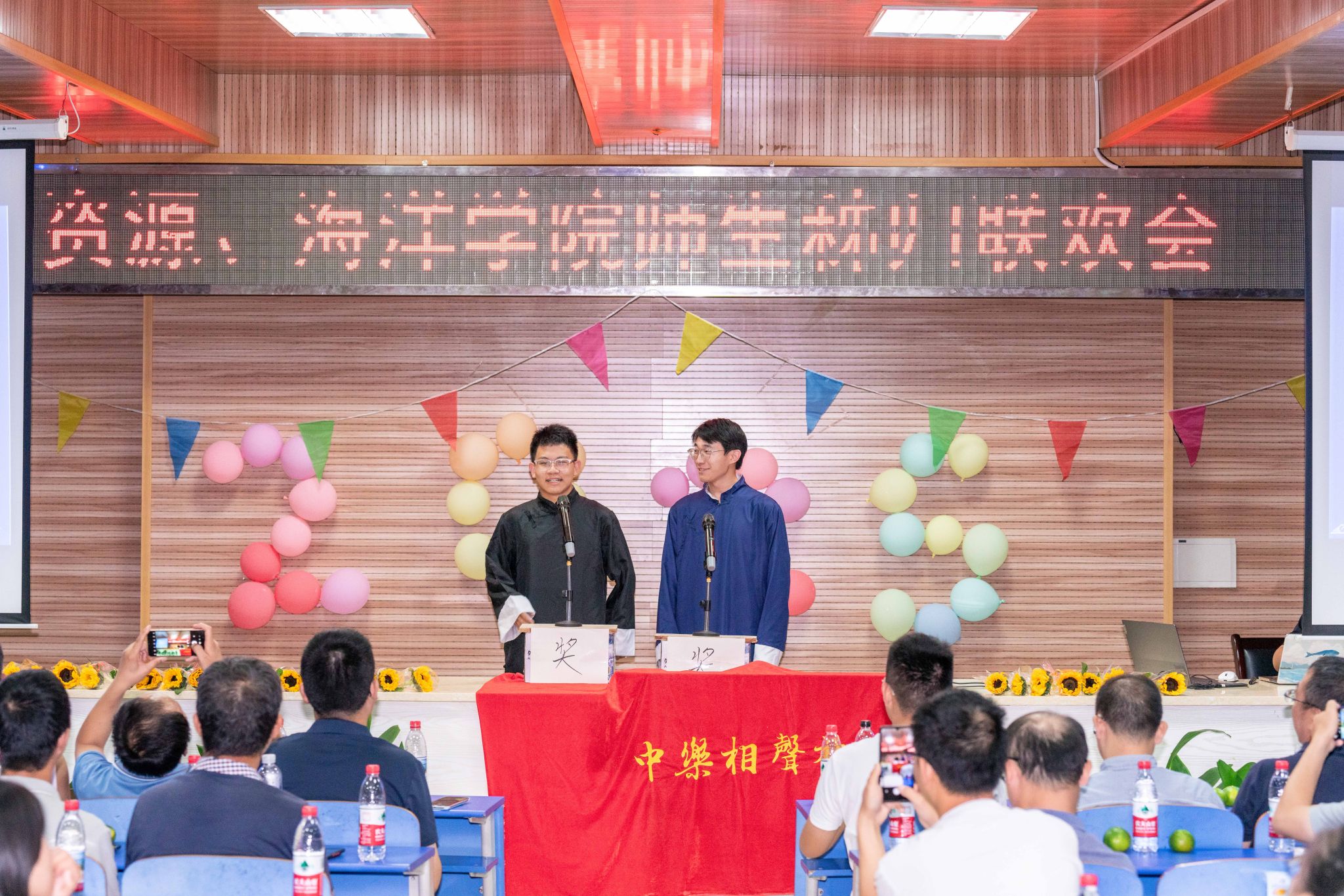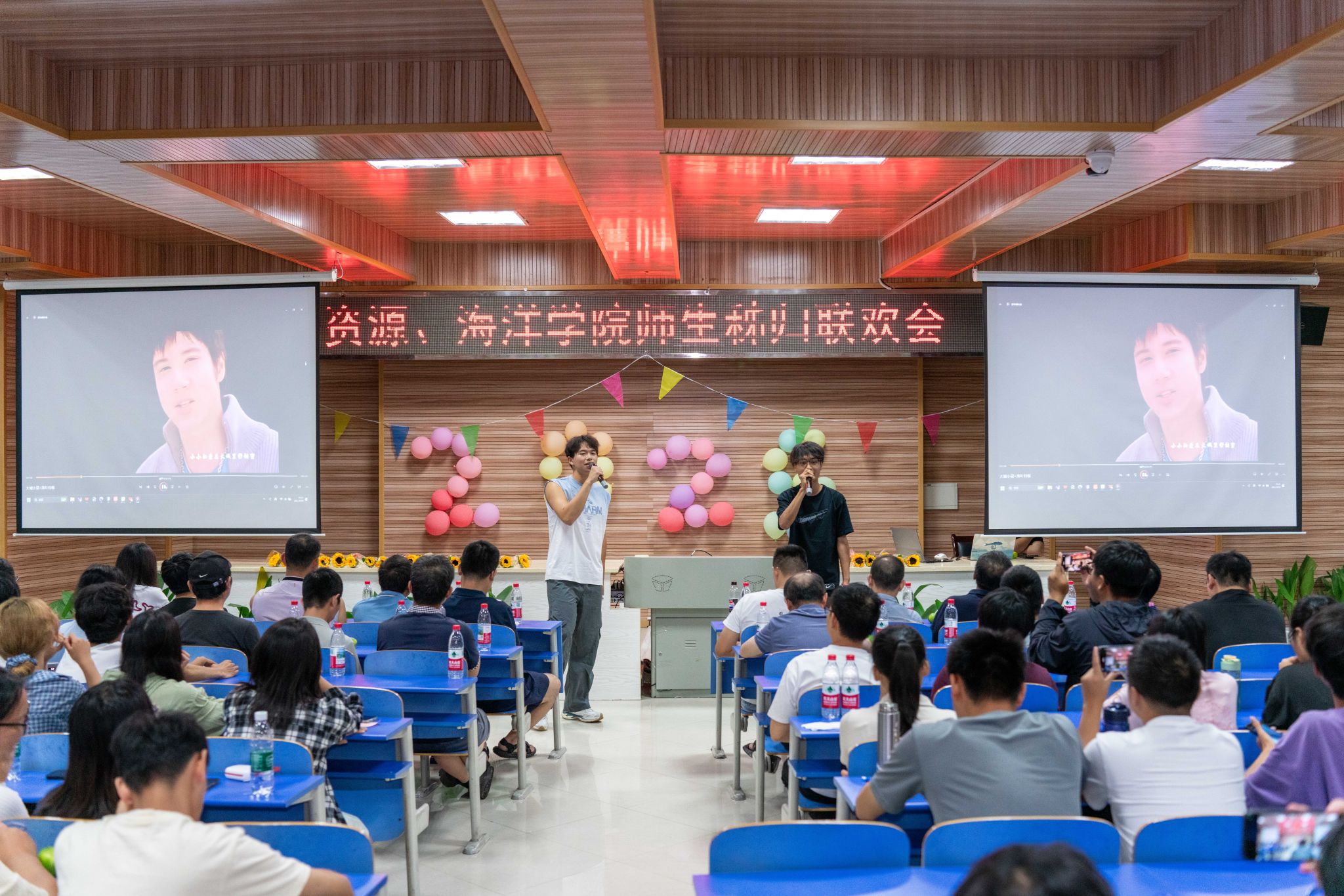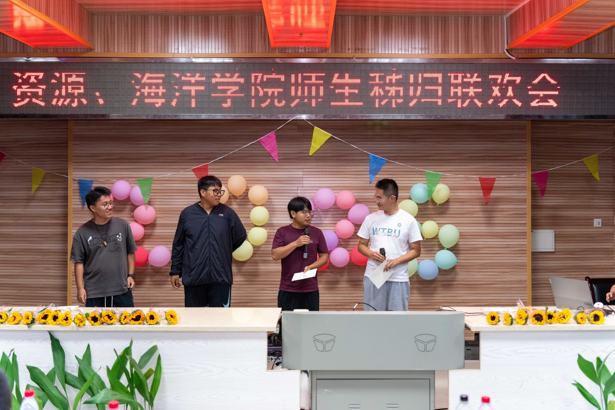 晚会的温情持续延展,主持人朗读学生手写的教师节祝福卡片:“于秭归实习,探寻地质奥秘,方知师恩如山……”字字真挚,句句动人。学生代表向两院教师献上向日葵花束,一声“教师节快乐”,凝聚了多少难以言表的感恩。