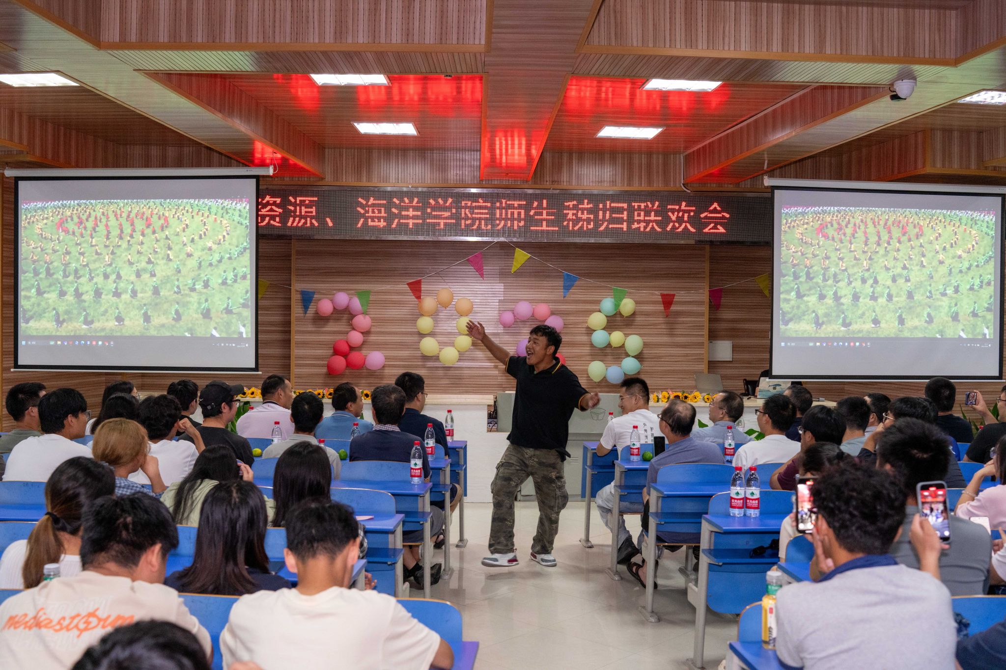 最终,全体师生高唱《勘探队员之歌》,铿锵有力的合唱将晚会推向最高潮,歌声中传递出对地质事业的热爱与坚守,也传递着对老师们无私付出的衷心礼赞。
