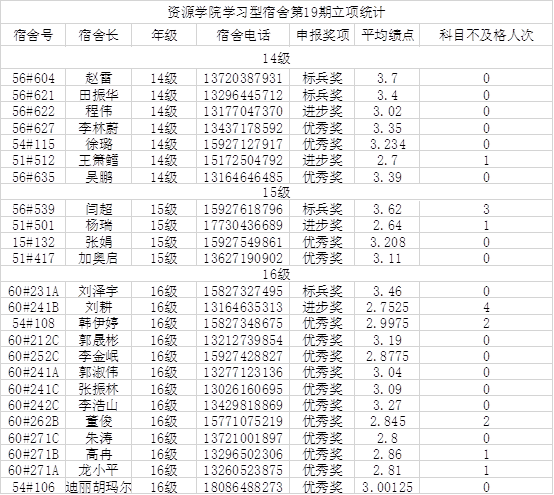 1.第19期结题:只针对于大二、大三和大四在上学期已成功立项的宿舍(见附表)。