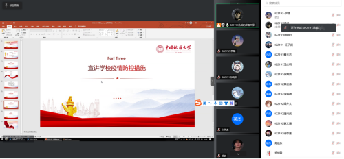 制作疫情防控政策宣讲课件,各年级线上线下召开疫情防控政策宣讲会,辅导员集中讲述当前国内疫情形势,通过疫情突破校园防线的案例,引导同学加强自我管理,不断增强纪律意识、集体意识、责任意识、公共意识。