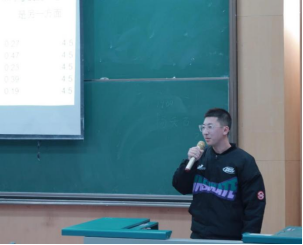 他最后以支教时参加座谈会发言中一段话“做一个有梦想的年轻人,守正不偏离,政治坚定,追求卓越;做一个有格局地大人,建功不抹黑,感恩地大,奉献社会;做一个有信仰的黄陂人,沉稳而不清谈,脚踏实地,仰望星空。”结尾,告诉同学们生活无限精彩、大学更是难得的精彩,期待同学们能够跳出忙碌,找到一份稚气的梦想和豪情。