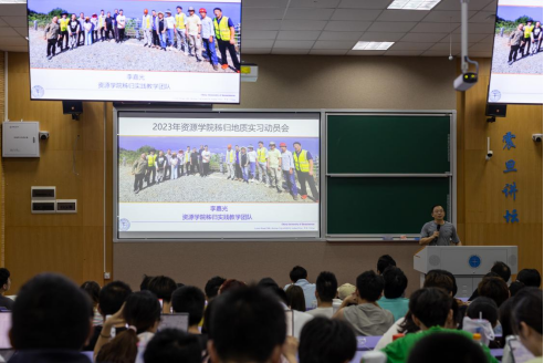 魏启荣和李嘉光分别从实习区区位地质概况、实习站人文环境、实习的目的和要求、实习线路和考核方式、实习前期准备和在站科研活动规划、教学纪律和实习安全等方面介绍周口店和秭归地质教学实习整体情况,提醒同学们实习之前做好专业知识和实习用品的准备,并着重强调了本次野外实习对于系统综合掌握野外地质调查基本技能、锤炼“吃苦”品质和塑造团队精神的重要意义,鼓励同学们学有所获、快乐实习。