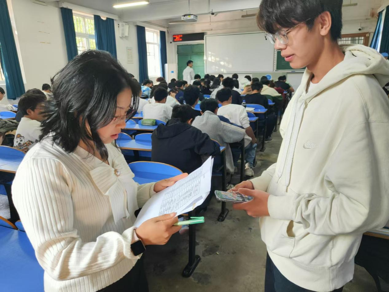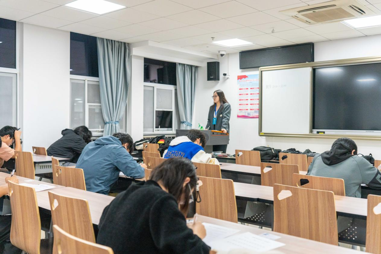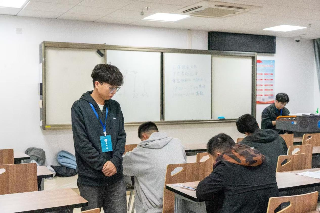 为检查和了解学生入学以来的学习情况,帮助同学们查缺补漏,11月3日晚,十大买球官方网站学生会学习部在东区教学楼组织2024级本科生第一次月考,助理班主任、驻班党员担任监考员,考试科目为高等数学和大学英语。