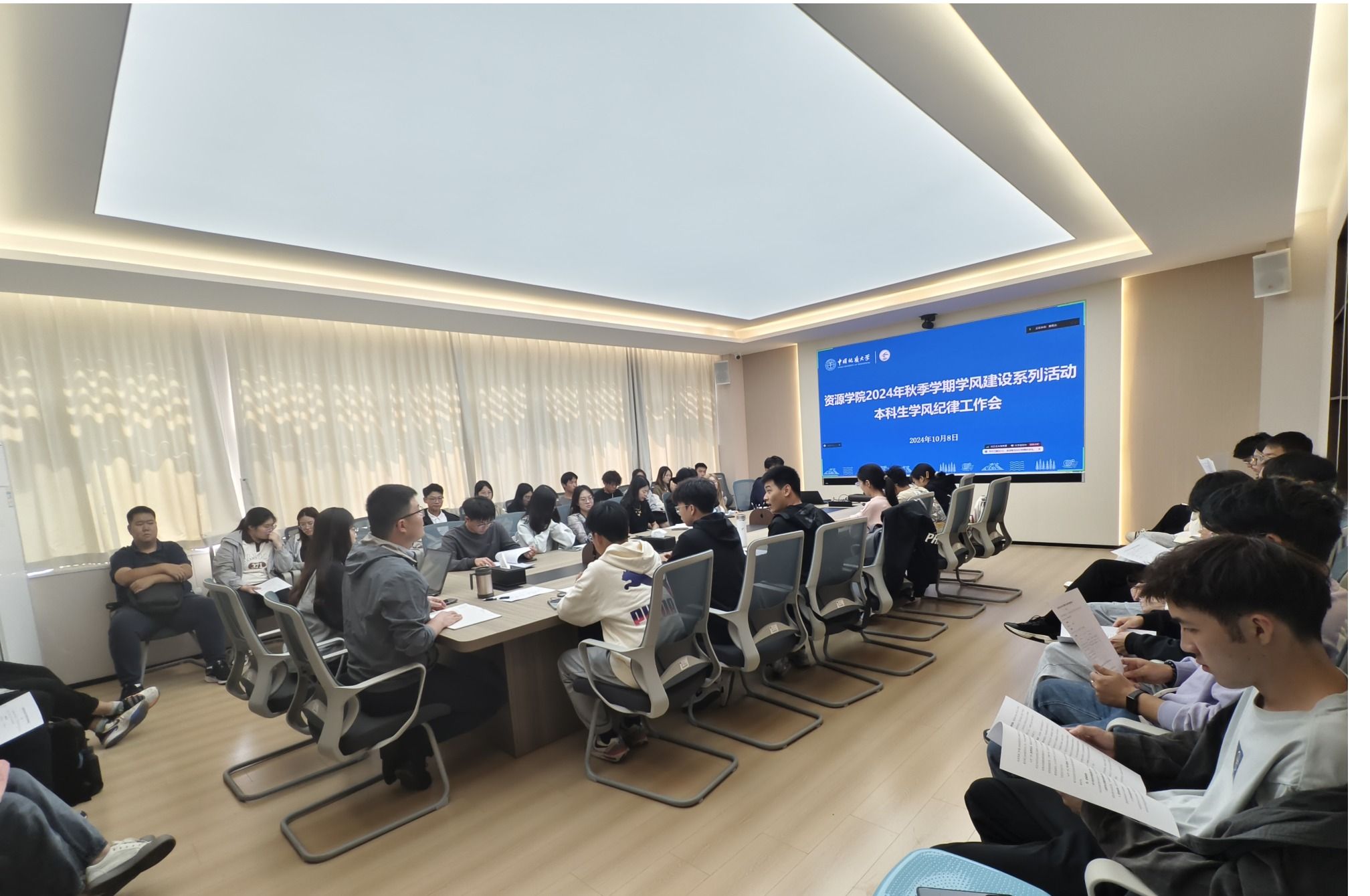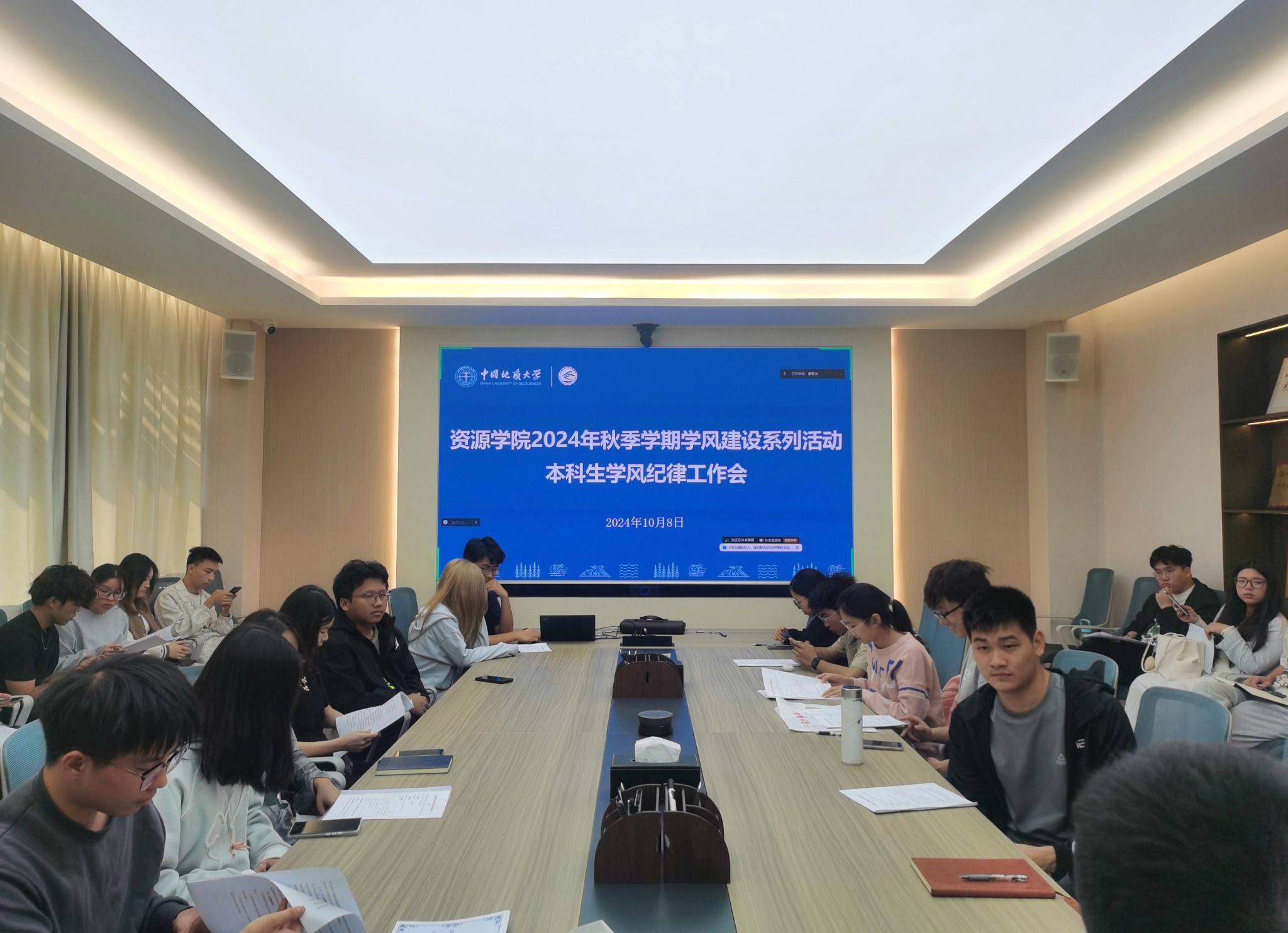 10月8日,十大买球官方网站举行“严在地大,学在资源”——2024秋季学期学风建设活动启动仪式,从榜样引领示范、学习能力培养、强化课堂管理、结对困难帮扶四个方面对学风建设活动进行介绍,现场宣读学风建设倡议书,学院党委副书记谭文伦、副院长李占轲参加并寄语同学们端正态度,规范行为,共筑优良学风。