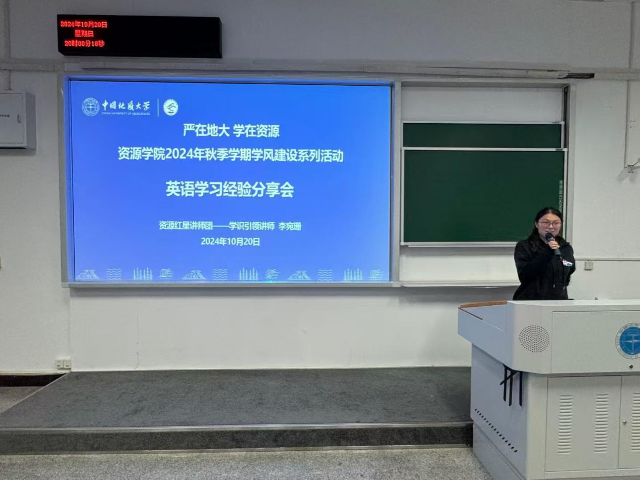 学院依托晚自习平台,适时开展学习经验分享、讲座论坛等活动。10月20日,资源红星讲师团成员李宛珊在集体晚自习为2023级全体同学做英语四级备考经验分享,帮助同学们完善复习计划,提升备考针对性。