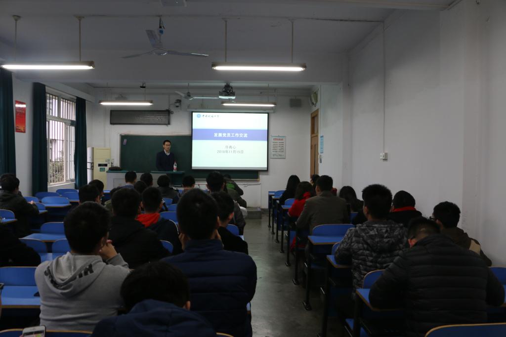 (通讯员 武田田)11月15日下午,十大买球官方网站2018年“学习之路”党员骨干培训班第四讲于教一202顺利举行。学校党委组织部冷再心老师为党员骨干们作了题为“发展党员工作交流”的专题培训。此次培训共有64位党员骨干到场学习。