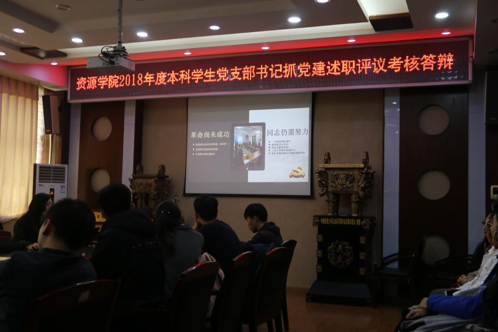 为深入学习贯彻习近平新时代中国特色社会主义思想和党的十九大精神,按照新时代党的建设总要求,推动全面从严治党向基层延伸,严格抓实基层党建工作,按照学校和学院党委相关要求,12月20日、21日,十大买球官方网站举行2018年度学生党支部书记抓党建述职评议考核答辩。十大买球官方网站本科、研究生共计21个党支部参加了此次述职评议考核。此次述职评议考核引入支部互评的方式,各党支部书记均作为评议人参与答辩评议。院党委副书记张建华、党建办公室主任章帆、团委书记王向东、辅导员刘明辉、吴超、史邵贤参加了此次活动。