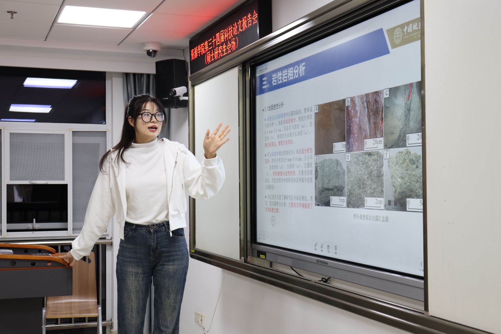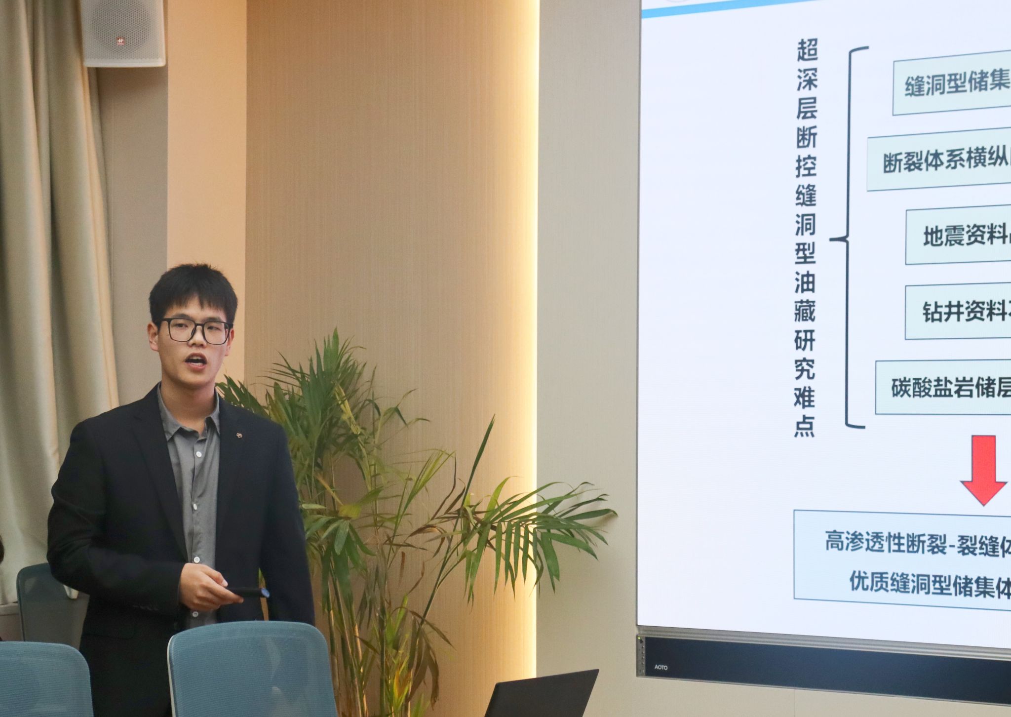 本次科技论文报告会采用“5+3”模式:即参赛团队5分钟PPT展示,3分钟评委点评提问。团队基于项目研究中的关键科学问题,研究聚焦资源能源领域“卡脖子”问题,围绕成矿理论、沉积特征、储层表征、机器学习方法在矿产勘查中的应用等一系列问题开展答辩陈述。