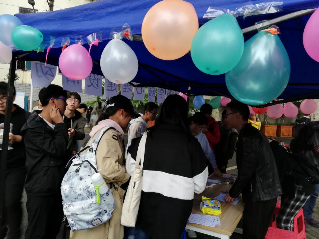 不到半天,展板上就已经贴满了便签,气球也用掉了好几箱。同学们兴致勃勃的贴上烦恼,扎爆气球,然后拿着奖品离开,开心的表情掩抑不住,压力也在一瞬间得到释放。一位年逾古稀头发花白的老奶奶在认真观看了展出的展板之后,对工作人员表示:“你们办的活动是有意义的,是真正能帮到同学的,也是同学们所需要的。”随后老奶奶以自身经历跟工作人员分享了她与压力抗争的故事,讲述了当年因没有妥善处理压力而对自身造成的影响,并告诫我们年轻人应重视自己的心理状况。