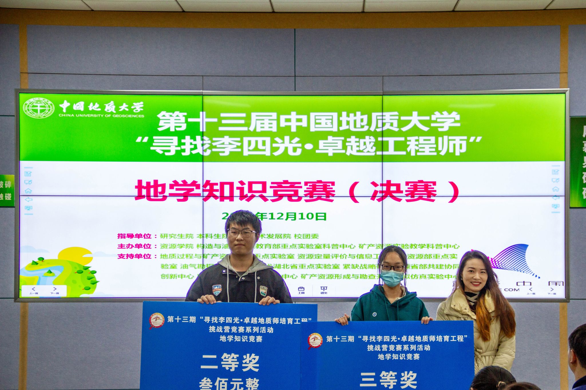 (通讯员胡銮刘睿摄影李飞喜柯皓淞)“这题真的选C啊?”“家人们,听我的,风险题赋分直接拉满!”在“你追我赶”的火热氛围中,12月10日晚,第十三期“寻找李四光·卓越地质师培育工程”地学知识竞赛决赛在南望山校区东区教学综合楼C0206教室落下帷幕。