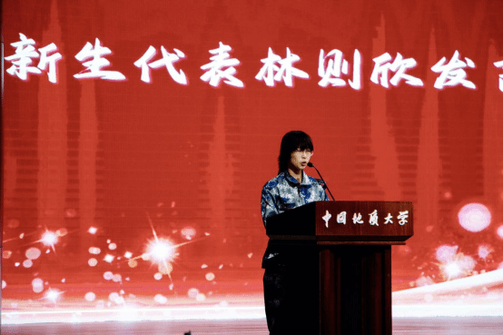 本科生新生代表林则欣发言。她提到自己坚定选择地大与十大买球官方网站,既有家族传承的影响,也有个人对资源领域的热爱与思考。她表示,学校 “艰苦朴素,求真务实” 的校训与个人理想高度契合,期待未来四年与同学们并肩同行,共同探索地球奥秘,在求知路上相互扶持、共同成长。