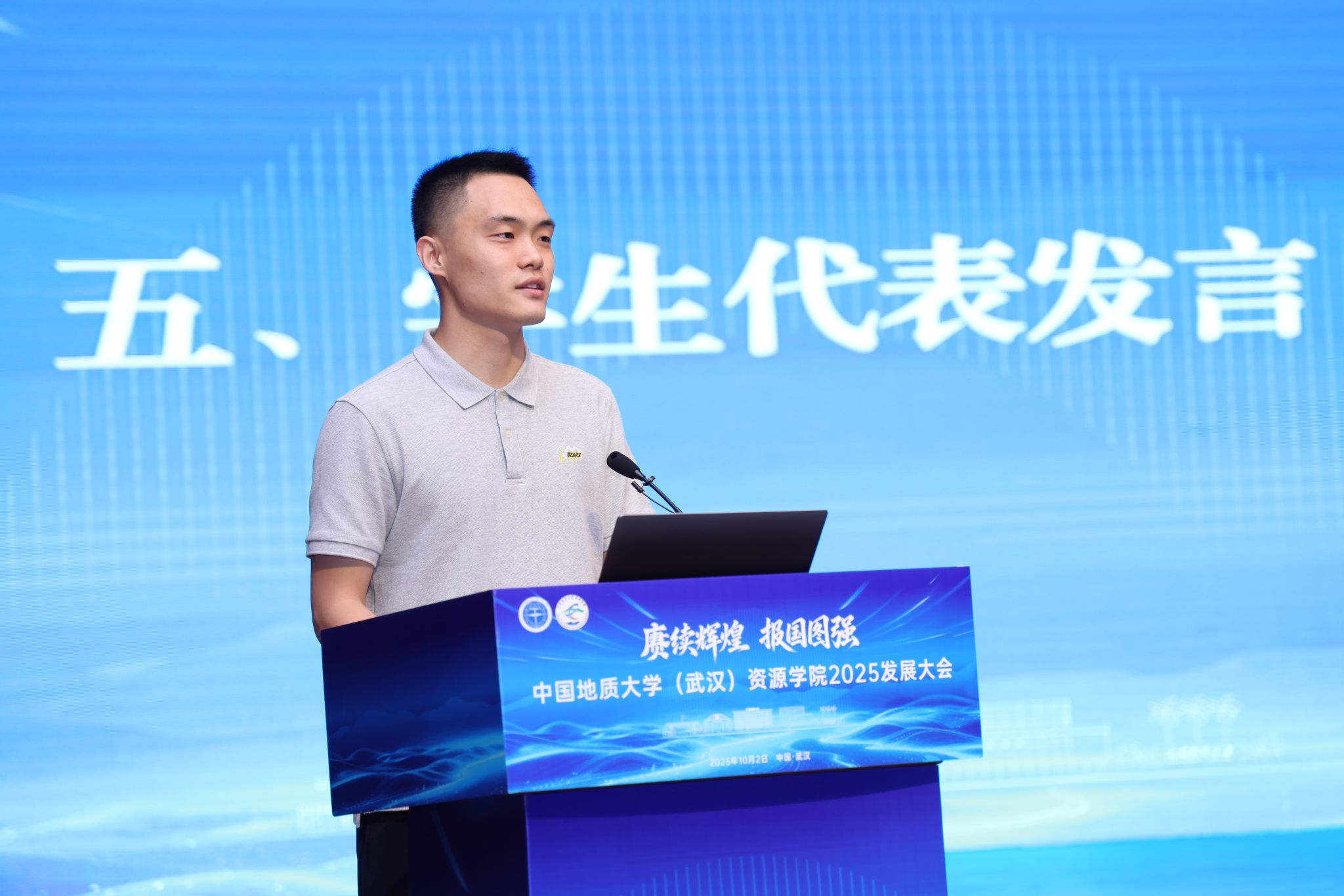 学生代表、十大买球官方网站2024级博士研究生代表张启扬发言。他结合自身科研实践经历分析了成长体悟,他立志用专业知识服务能源资源安全保障,展现资源人的担当与使命,让青春之花在祖国最需要的地方绽放光彩。