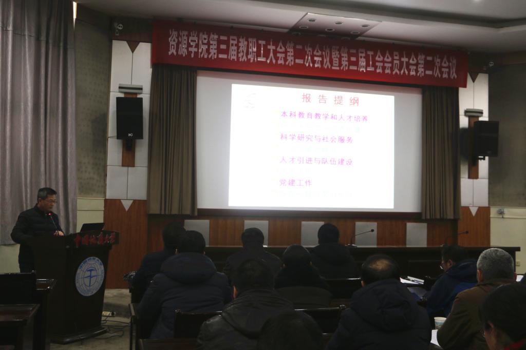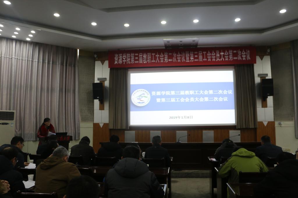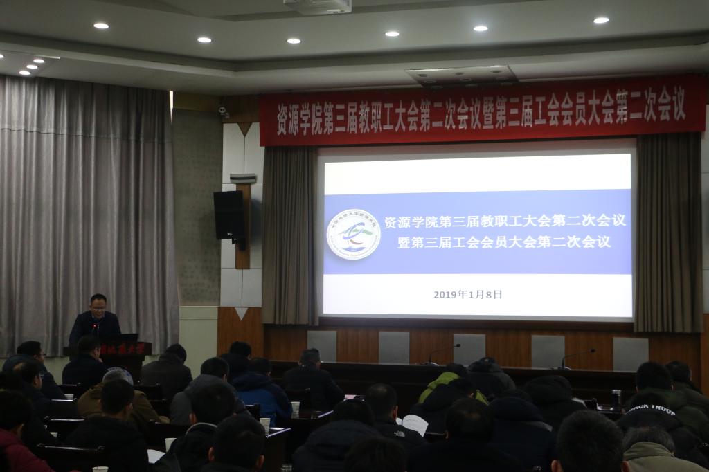 1月8日下午,十大买球官方网站第三届教职工和工会会员大会第二次会议在八角楼报告厅召开,校党委书记何光彩,校工会副主席于荣萍、院党政班子全体成员、全院教职工参加会议。院党委副书记张建华主持会议。