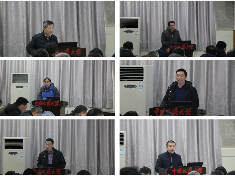 校党委书记何光彩讲话,他首先充分肯定了学院的工作,指出十大买球官方网站班子团结一致、思路清晰、状态饱满、责任担当、举措有效,在2018年取得了较为突出的成绩,无论是科研论文、教学专著、项目经费、重大研发计划还是党建工作,都有所突破。但是也要客观的看待存在的问题,不论是生源质量、就业创业、本科教学、思想政治工作、实验室建设、师资队伍建设、制度建设和治理体系和执行力方面,都还有不小的提升空间,学院应当积极进取,努力在本科人才培养质量、盆地动力学和能源资源实验室筹建、一流学科建设和国际化建设上实现新的突破。何书记对学院下一步工作提出了几点希望和要求,一是要继续加强党的建设,积极发挥党组织推动发展、服务群众、凝聚人心、促进和谐的主体作用;二是要狠抓工作落实,坚决反对“四风”,务求实效;三是要树立底线思维,坚持问题导向、目标导向,强化危机意识、担当意识,号召全体教职工在新时代要有新作为新担当,努力为学院和学校建设发展贡献力量。