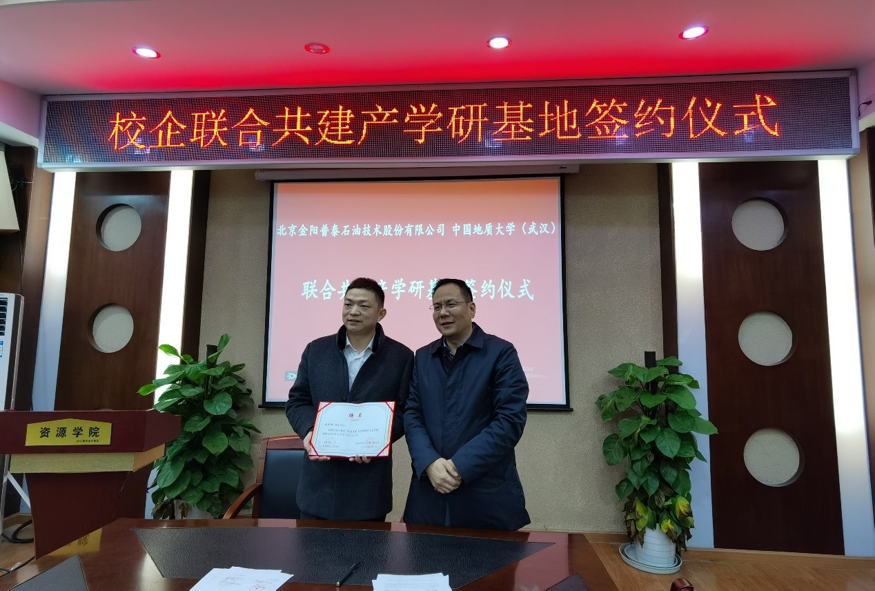 2019年12月24日,北京金阳普泰石油技术股份有限公司(GPT)与十大买球官方网站联合共建产学研基地签约仪式在主楼330会议室举行。院党委书记李宇凯、党委副书记张建华、石油工程系相关老师参加了签约仪式。签约仪式由石油工程系党支部书记谢丛姣同志主持。