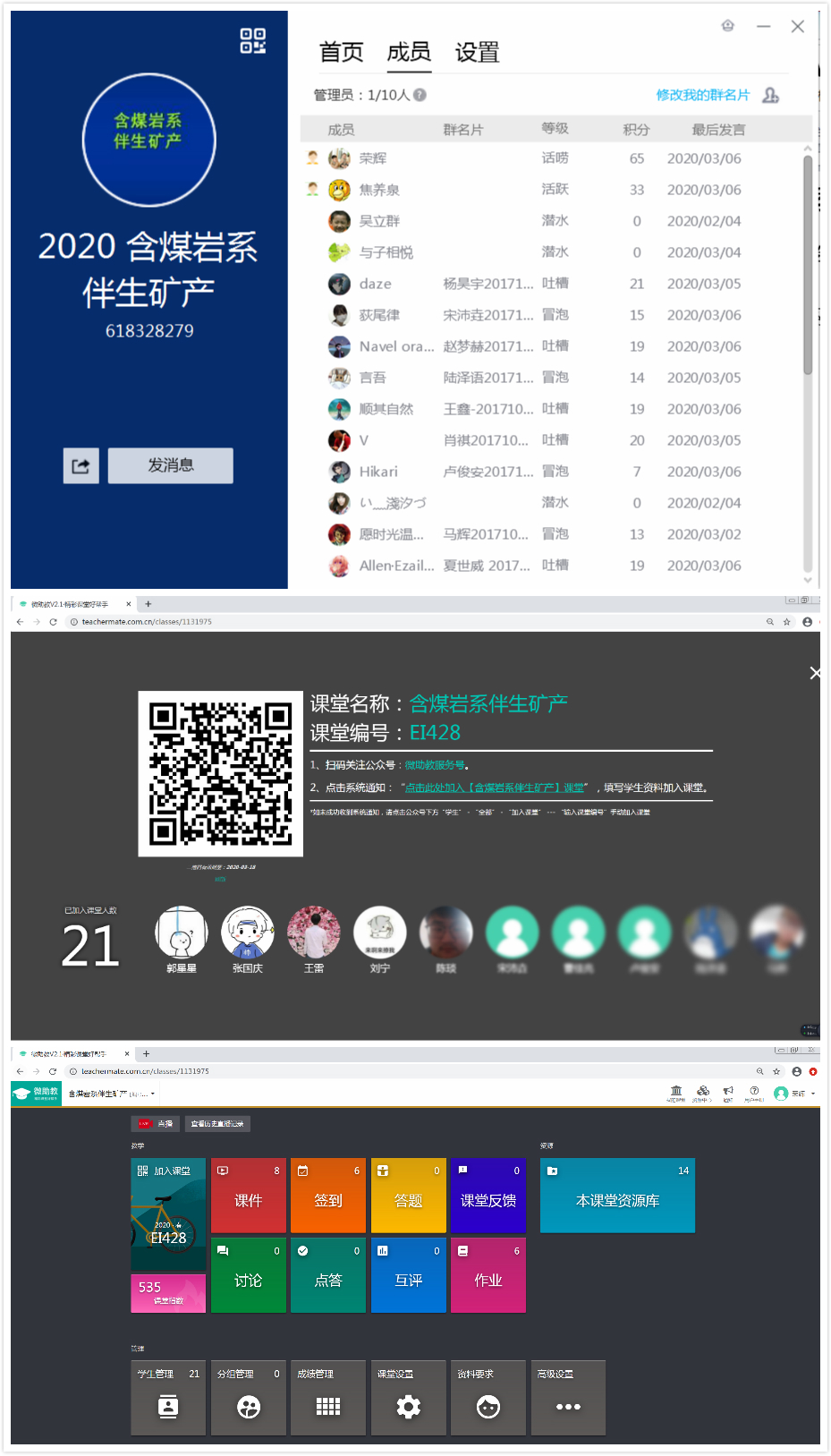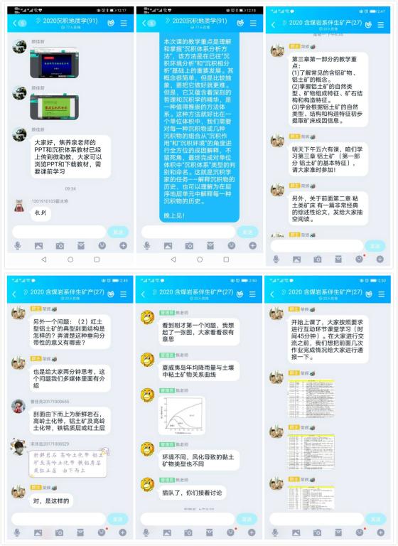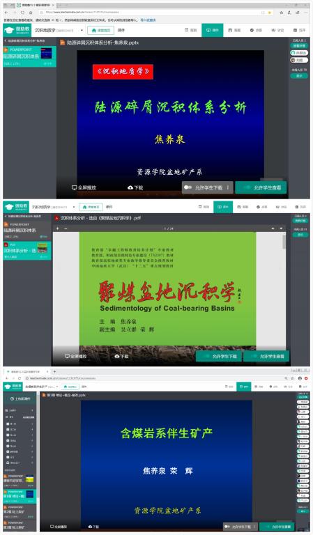 教学团队经过充分的远程酝酿和讨论,及时调整和制定了《含煤岩系伴生矿产》(本科生课程)、《沉积地质学》(研究生课程)以及《应用沉积学》(研究生课程)三门课程的全新线上教学方案,而另外两门本科生课程——《含煤岩系岩芯编录与相分析》(课程设计)和《地球科学概论》(500人上课),由于受限于实验室场地和上课人数众多等因素,决定暂停,待疫情结束后再根据学校安排执行。