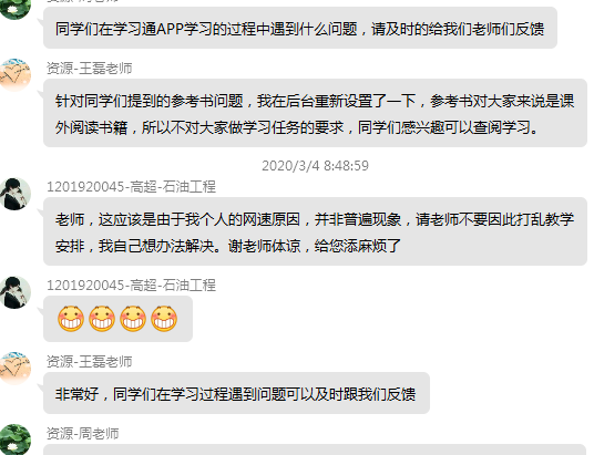 本次课程共有30名石油与天然气工程专业的学生参加。《高等油藏工程》重新设计了教学方案,以超星平台为基础,通过QQ群联系学生的模式来开展教学工作,这样的课堂学习不仅打破了学校课堂固有的教学模式,也让我院的同学们首次体验到了“停课不停学”的别样线上线下全新学习模式。