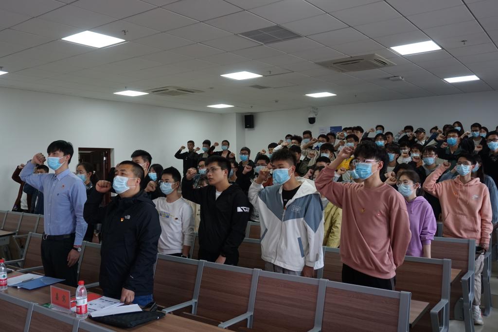 会议第一项齐唱团歌、重温入团誓词。