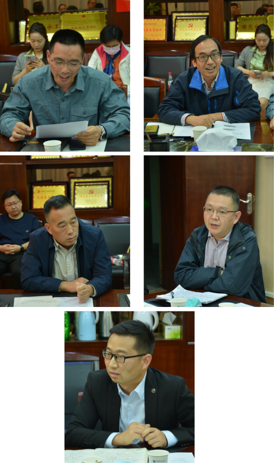 学院党政班子成员交流学习体会。在认真听取师生代表发言的基础上,结合工作分工,大家围绕学习贯彻习近平总书记重要回信和讲话精神及学院办学目标、全面加强和改进人才培养、学科发展、队伍建设、科学研究、社会服务、文化传承与创新、国际交流与合作、党建与思想政治工作、全面推进学院事业更好更快发展等一一回应师生关切、畅谈意见建议。严德天谈到,要聚焦国家战略需求,推动绿色发展理念和传统地质勘查相融合,加强有组织科研创新和集中攻关;赵葵东介绍学院研究生推免情况,聚焦瞄准行业产业需求优化学科专业方向、加强和落实研究生分类培养、服务国家“一带一路”战略等交流思路举措;朱红涛讲到,要准确把握行业发展脉搏,大力推进学院科研平台、实验室调整优化、共建共享,依靠高质量创新和高水平成果抢占前沿高地;沈传波讲到,加大教育教学和人才培养改革,加强基层教学组织和课程建设,让教师乐于教学,学生乐于学习;谭文伦介绍学生思想动态和学院招生就业情况,围绕学生专业思想教育工作交流思路举措和取得成效。