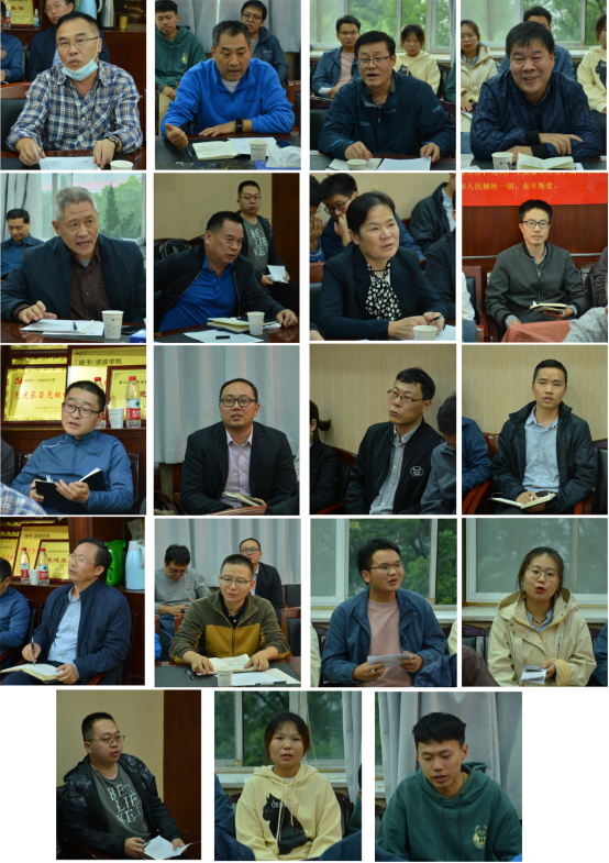 会上,19位师生紧紧围绕会议主题畅谈学习体会。大家聚焦学习贯彻习近平总书记重要回信精神和关于能源资源工作的重要论述,围绕落实立德树人根本任务、建设高质量的人才培养体系、面向行业提供强有力的科技服务、聚焦“双一流”加强和改进学科建设、建设高水平的科技平台和实验室、切实改善基本办学条件、加强学生专业思想教育和价值引领、加强师资队伍和创新能力建设、改进工科评价推进团队建设、积极服务新一轮找矿突破战略行动、主动融入“一带一路”加快国际化办学、保障国家能源资源安全等积极建言建策。全国模范教师、盆地矿产系焦养泉教授说,在习近平总书记的回信中,深知使命光荣,倍感责任重大,建议把专业建设和本科生培养放在学院中心地位,落实好立德树人根本任务,为国家矿产资源勘查开发源源不断输送优秀人才。教育部资源勘查课程虚拟教研室负责人、资源科学与工程系吕新彪教授说,习近平总书记的回信深刻阐述了矿产资源及勘查开发在经济社会发展中的重要地位,为新时代资源能源事业发展指明了方向,建议围绕教育和产业“双促进”,推动教师从“我能干什么”到“行业需要什么”躬耕教书育人、科研攻关,引导学生夯实和弘扬“学了就要干”的专业思想和爱国情怀。教育部首批高校“双带头人”教师党支部书记工作室负责人、石油工程系谢丛姣教授说,70年来学院为国家资源能源事业做出了重要贡献,建议加强石油及天然气工程学科建设,加强智能油田、数字油田、碳储工程等新理论新技术攻关,为国家油气资源战略做出更大贡献。石油工程系姚光庆教授说,习近平总书记的回信高度赞扬了地质工作者的使命担当精神和优良传统作风,建议加强宣传教育,引导师生坚定资源能源报国理想。石油地质系陈红汉教授建议,进一步扩大本科生招生规模,不断优化专业结构,加快推进绿色勘查,持续描绘资源人为国建功立业的华彩篇章。石油地质系陆永潮教授建议,进一步深化校企合作、产学研融合,发挥科教实力推进服务上门,持续提升行业服务能力,推动共建、共创、共赢。资源科学与工程系陈鑫副教授说,团队将认真学习贯彻习近平总书记重要回信精神,向“英雄地质队”学习,争取在新一轮找矿突破战略行动中发挥更大作用。矿产普查与勘探专业2016级直博生马盈说,将始终坚定政治信仰,努力学好专业知识,不断提升科研能力,为保障国家资源能源安全贡献青春力量。基地班本科生党支部书记张行凯说,将主动学习宣传习近平总书记重要回信精神,努力做爱国奉献、开拓创新、艰苦奋斗的新时代资源学子。