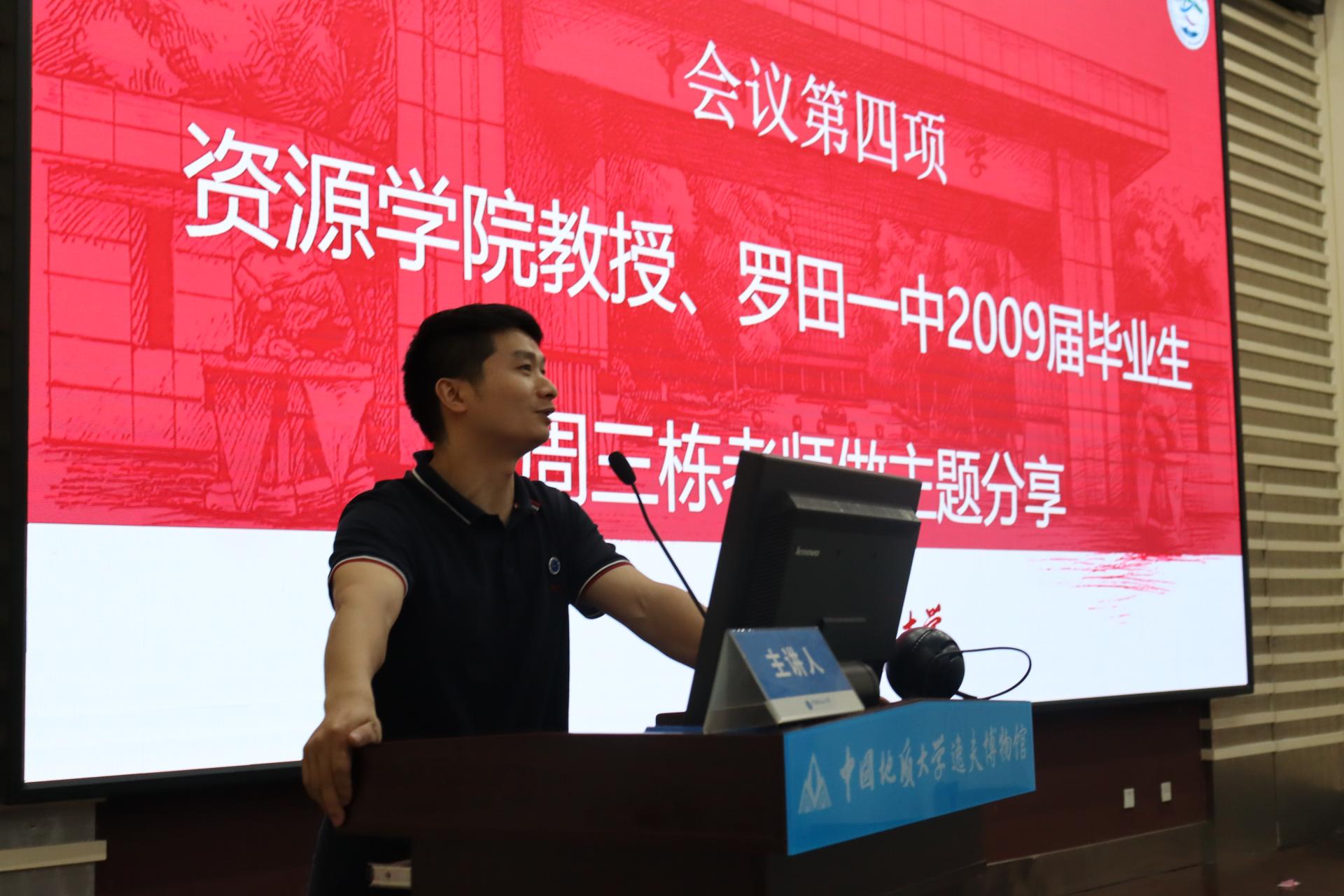十大买球官方网站教授、罗田县第一中学2009届毕业生周三栋做《奋进·成长》主题分享。他深情回忆了在罗田一中的求学成长经历,讲述了自身成长的奋斗经历,并寄语罗田一中学弟学妹:要树立远大志向,珍惜时光,不负韶华,在培养兴趣中踏实学习,通过拼搏奋斗实现青春梦想。
