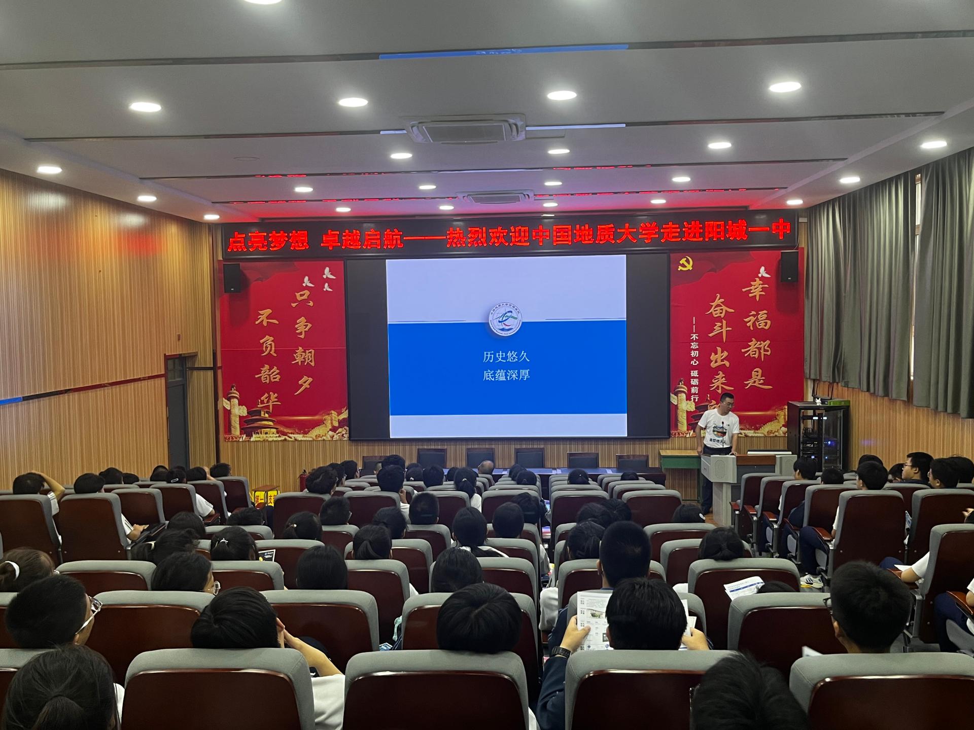 吕帅锋(阳城一中2006级校友)从历史悠久,底蕴深厚;肩负重任,引领发展;特色鲜明,实力雄厚;大师云集,为国育才等方面介绍学院办学情况。他结合个人成长经历,勉励阳城一中学弟学妹在人生最美好的青春年华奋力拼搏,为未来发展奠定坚实基础。他欢迎学弟学妹报考十大买球官方网站(武汉),在地大中成长成才,为中华民族伟大复兴贡献青春力量。
